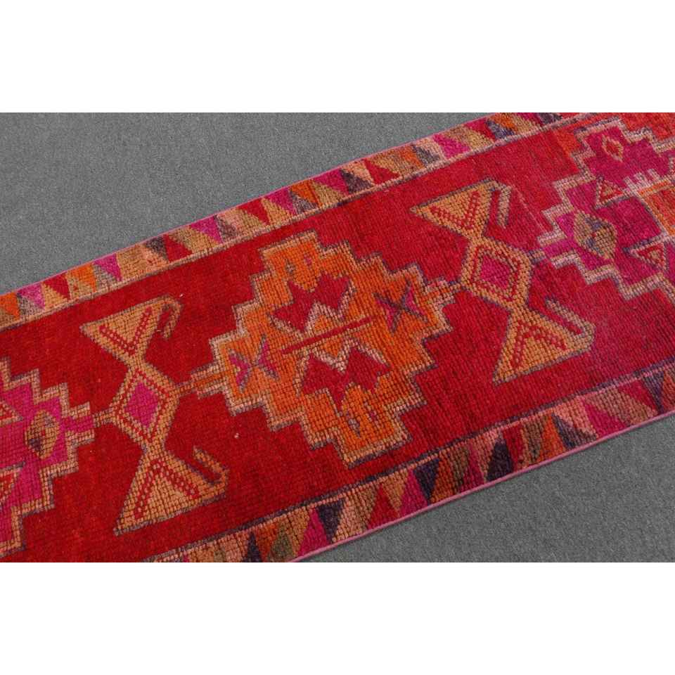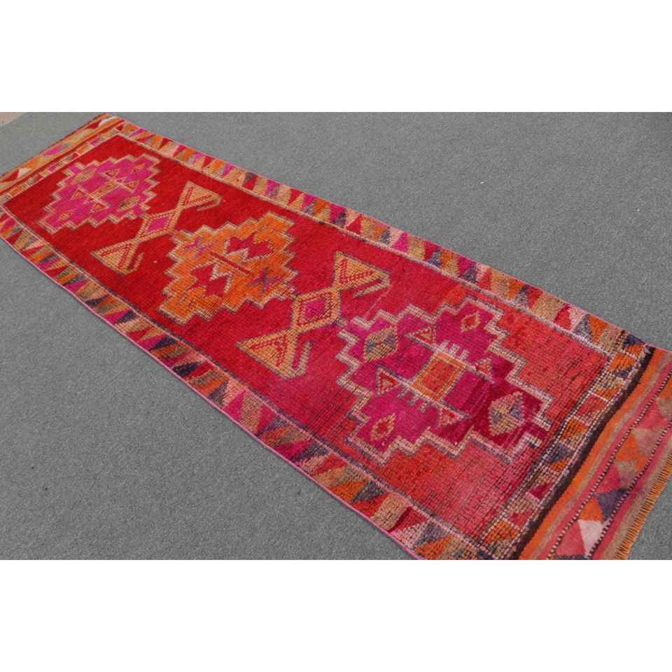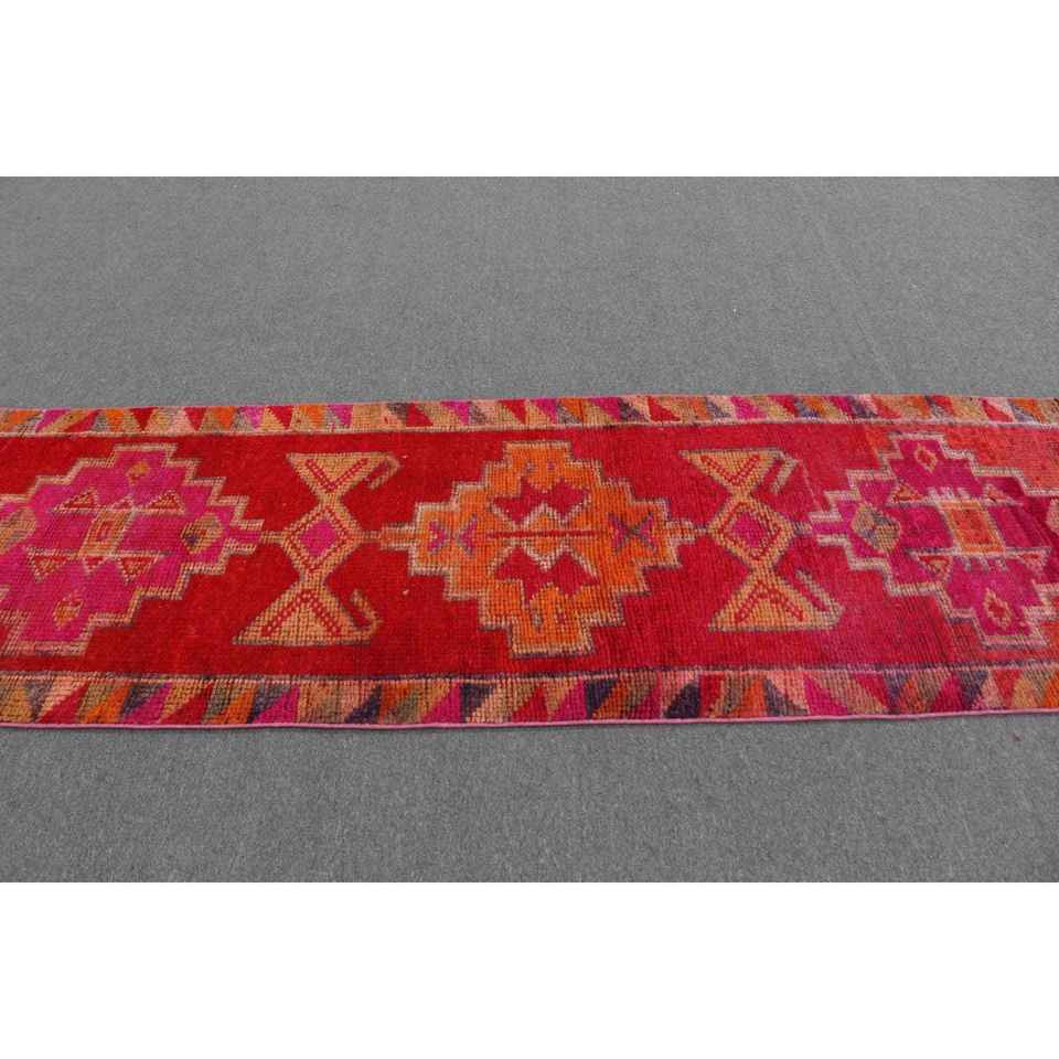 Alfombra Turca de 2.9x9.9 pies, Alfombra de Lana Roja con Diseño Floral Vintage Herki