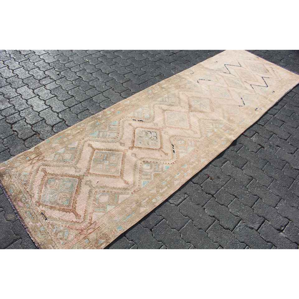 Alfombra Turca de 3x9.7 pies, Alfombra de Lana Ikat Marrón Vintage