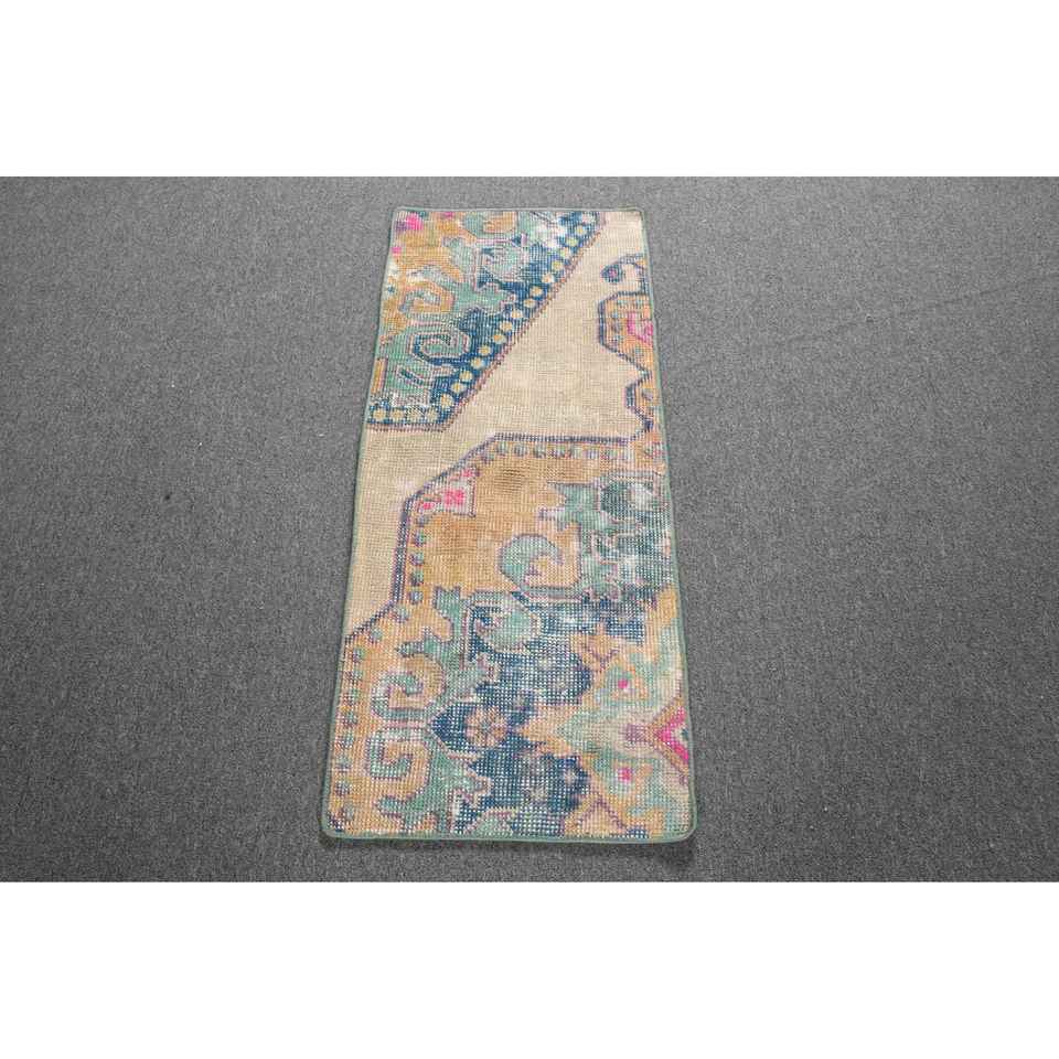 Alfombra Turca Pequeña de 1.3x3.2 pies (41x99 cm), Alfombra de Lana Vintage con Diseño de Plantas y Árboles Azules
