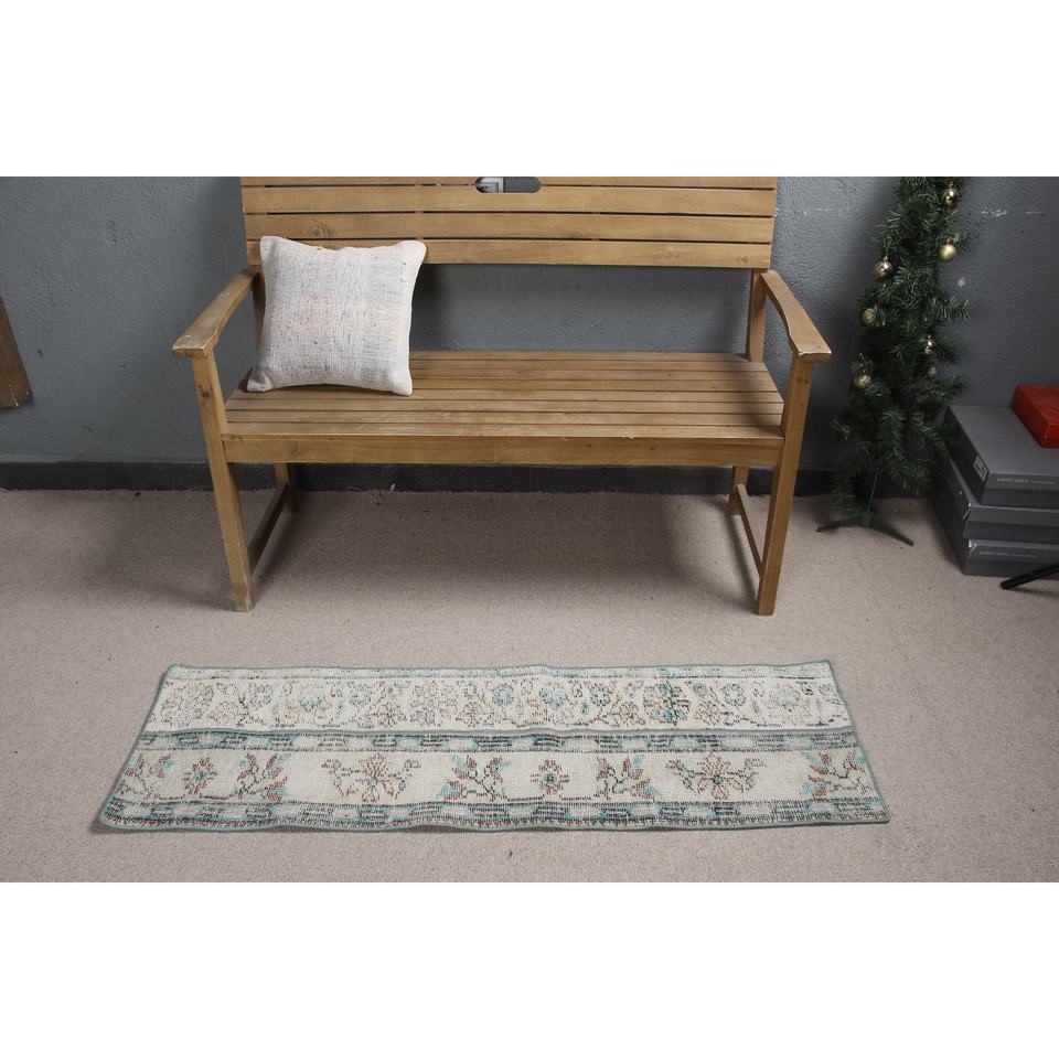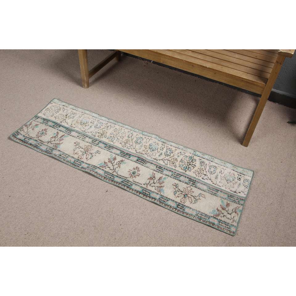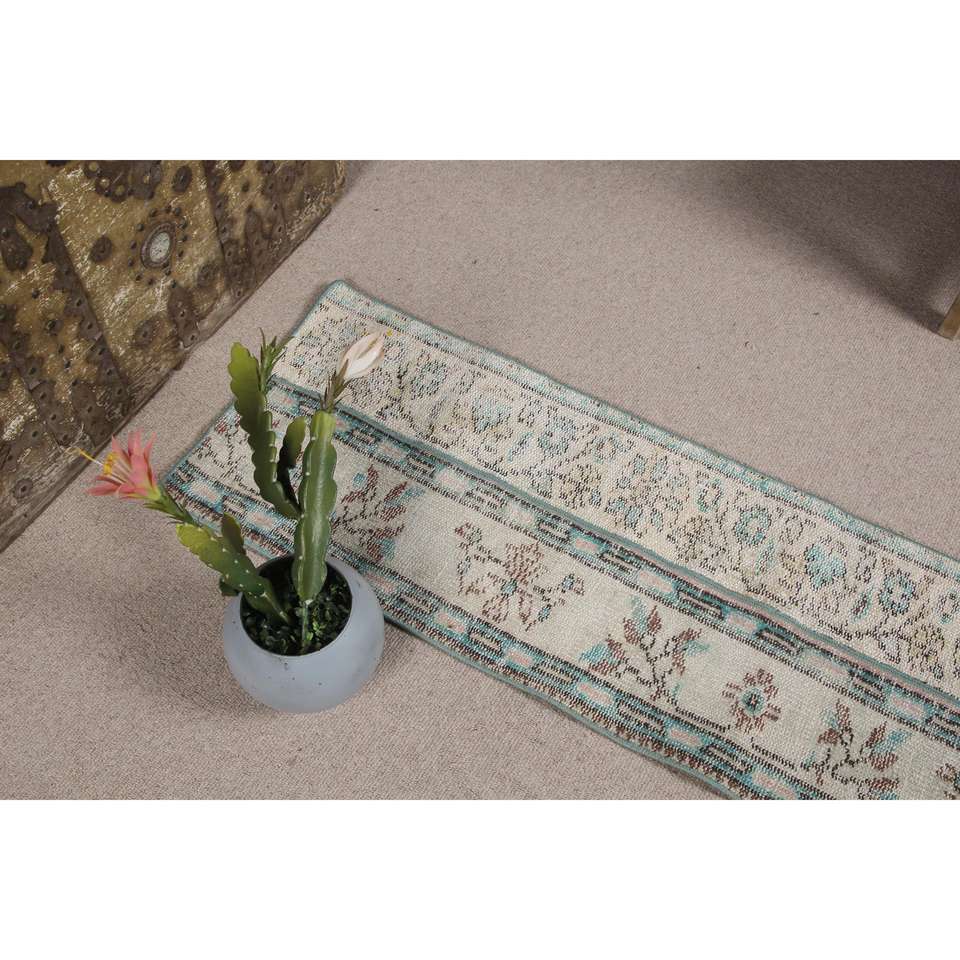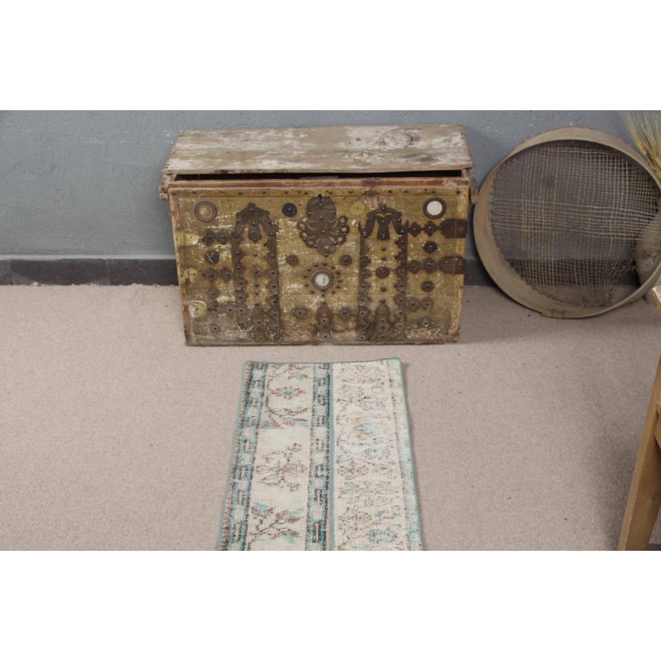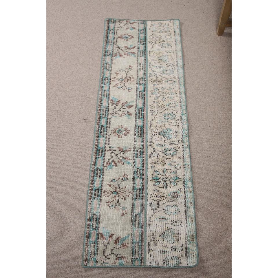 Alfombra Turca Pequeña de 1.4x4.6 pies (43x140 cm), Alfombra Vintage con Rayas Azules