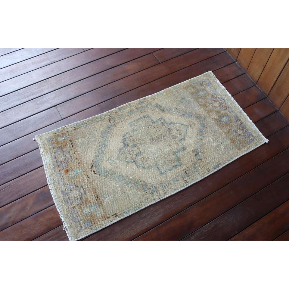 Alfombra Turca Pequeña, Alfombra Vintage de 1.6x3.1 pies, Alfombra de Lana Azul