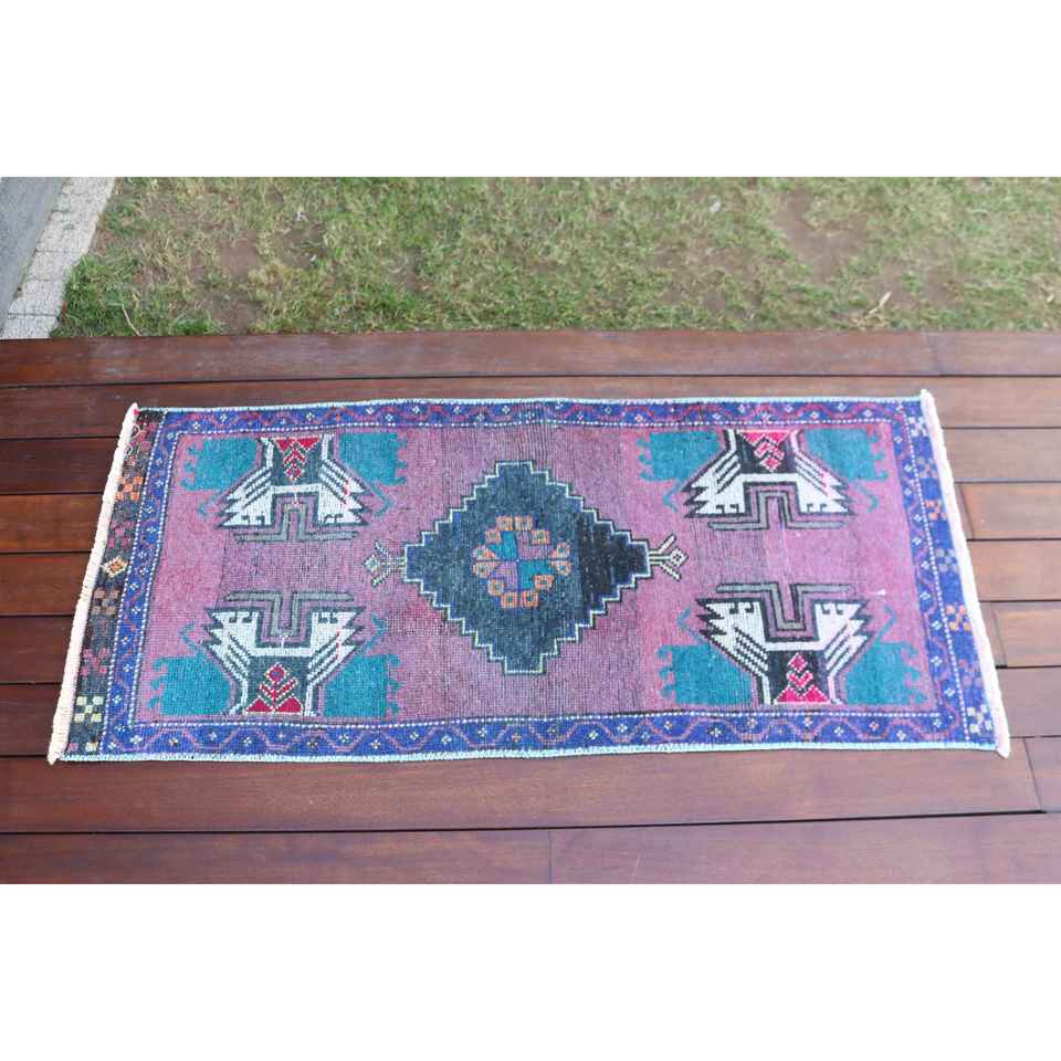 Alfombra Turca Pequeña de 1.7x3.7 pies, Alfombra de Lana Vintage con Diseño Floral Rosa