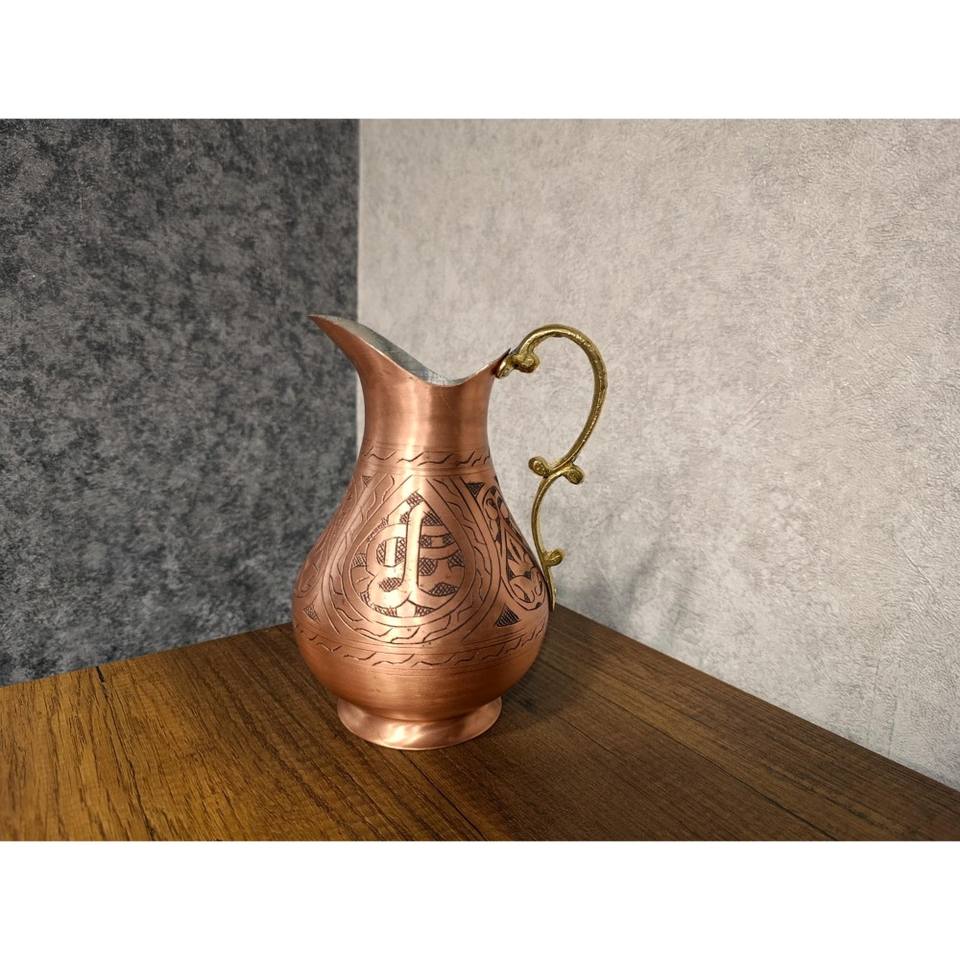Jarra de cobre hecha a mano de estilo turco, jarra martillada de cobre, vasos de 1 litro