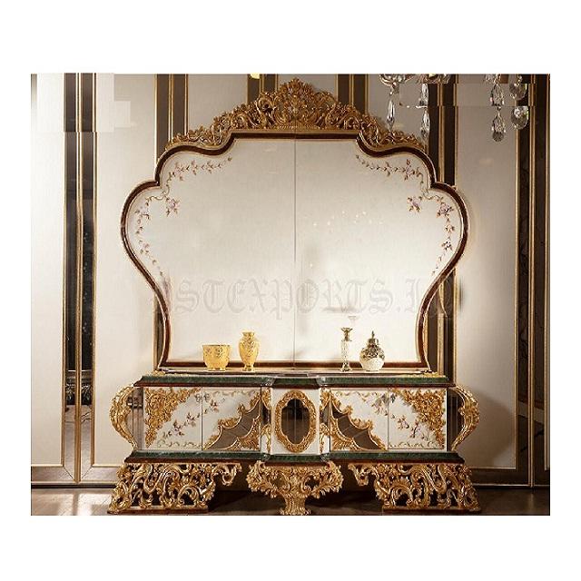 Mueble de TV Tallado Estilo Turco para el Hogar, Mueble de TV y Gabinete de Lujo Estilo Barroco, Acabado Dorado, Mueble de TV Elegante, EE. UU.