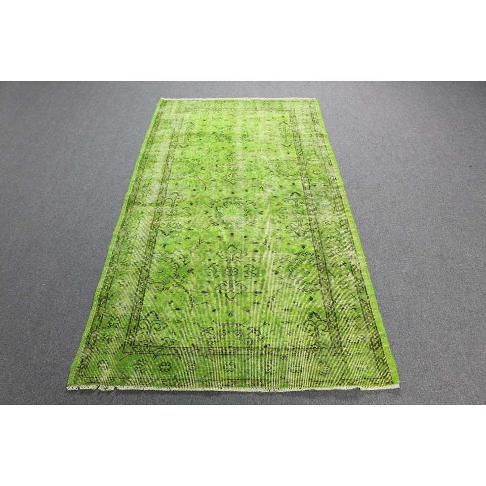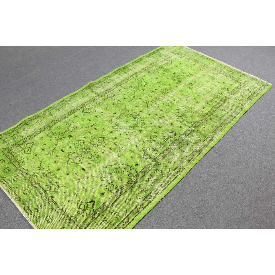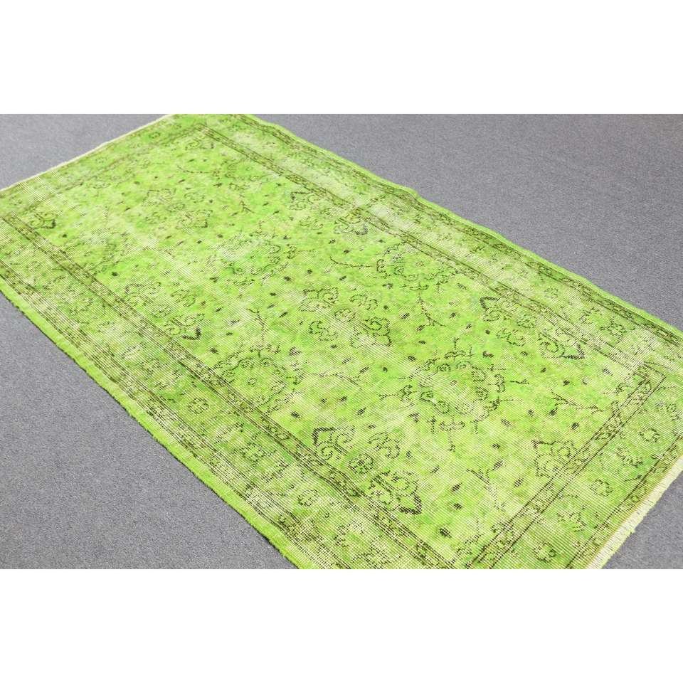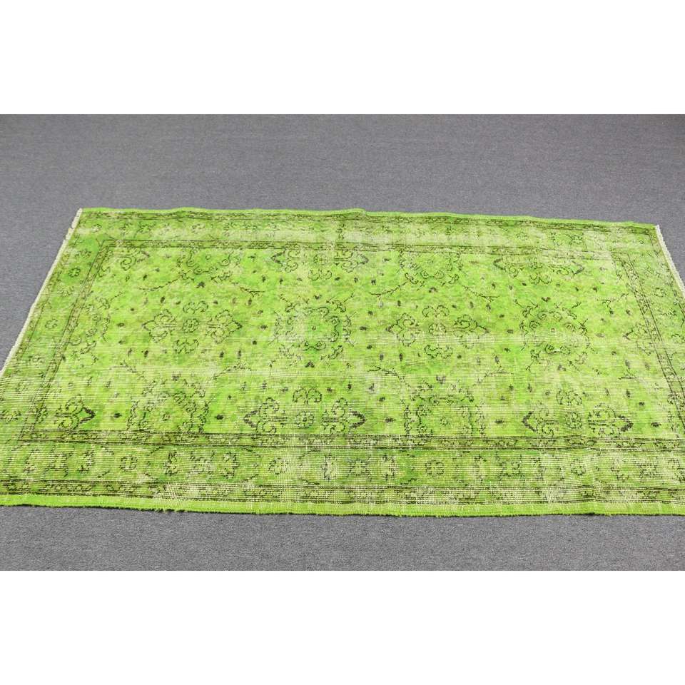 Alfombra Turca Vintage de 3.7x6.8 pies, Alfombra de Lana con Diseño de Plantas y Árboles Verdes