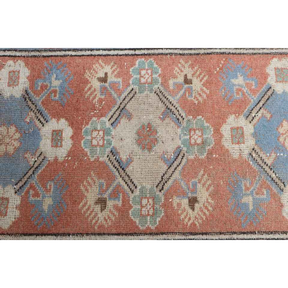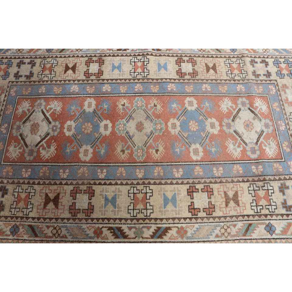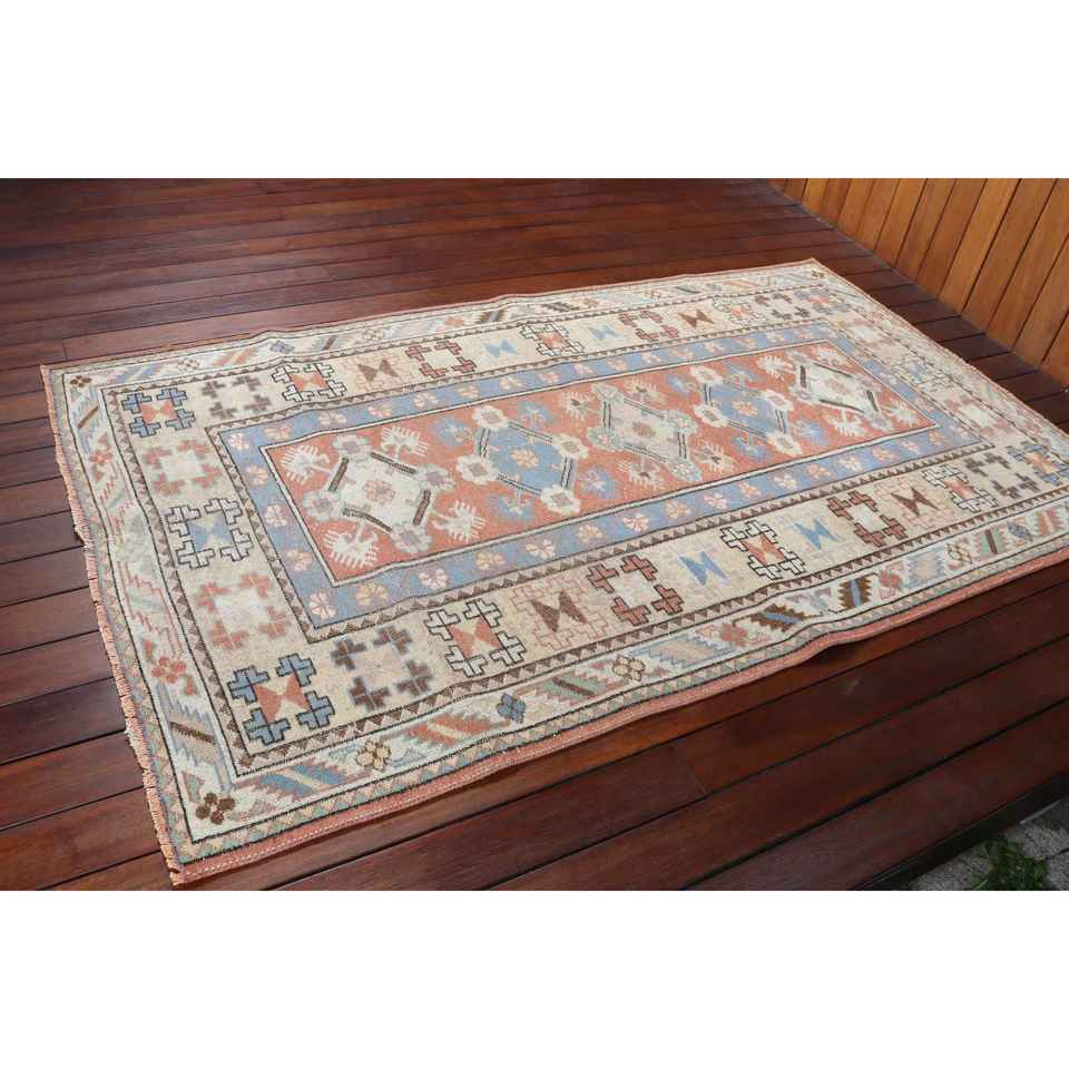 Alfombra Turca Vintage de 3.8x6.4 pies (116x194 cm), Alfombra Azul con Diseño Floral