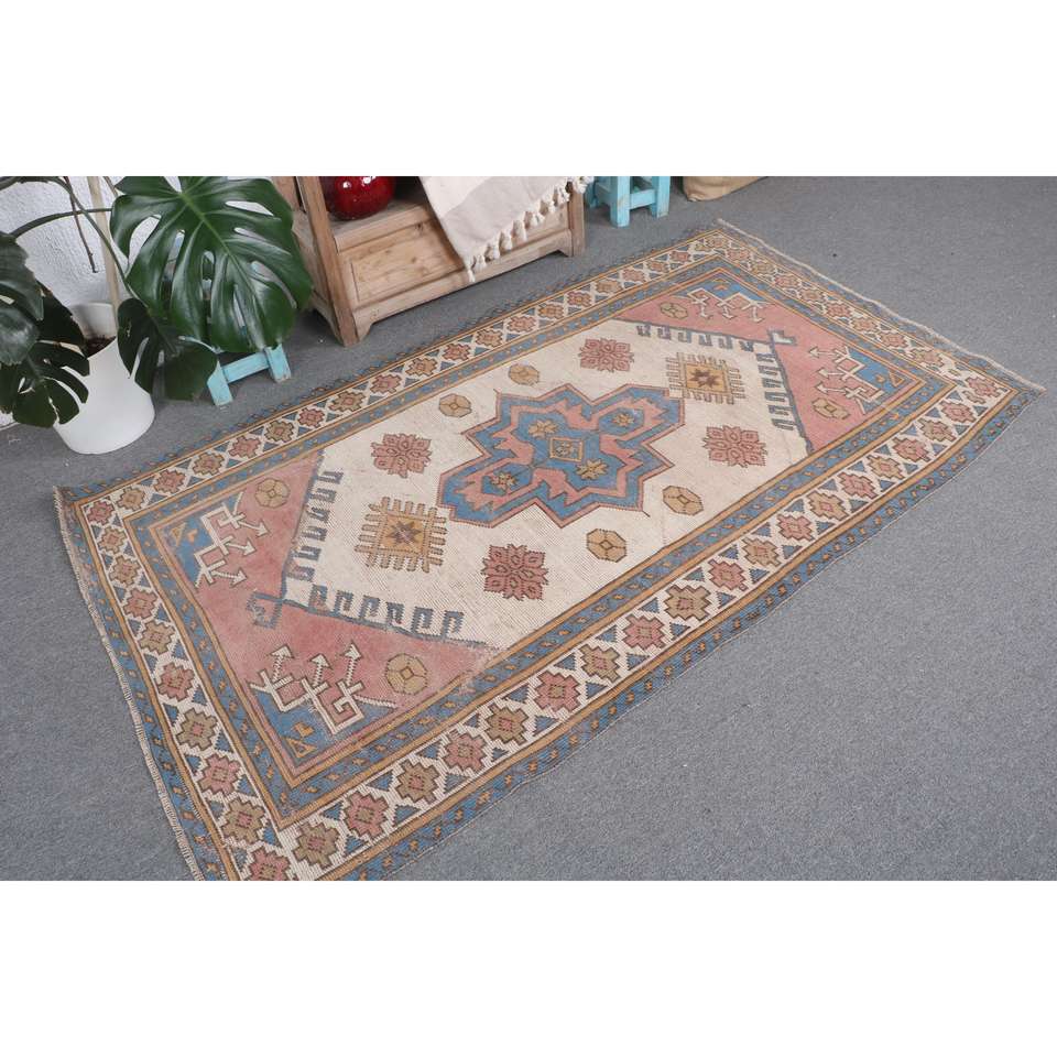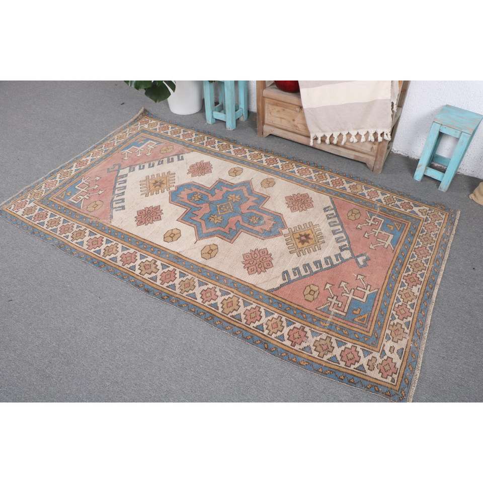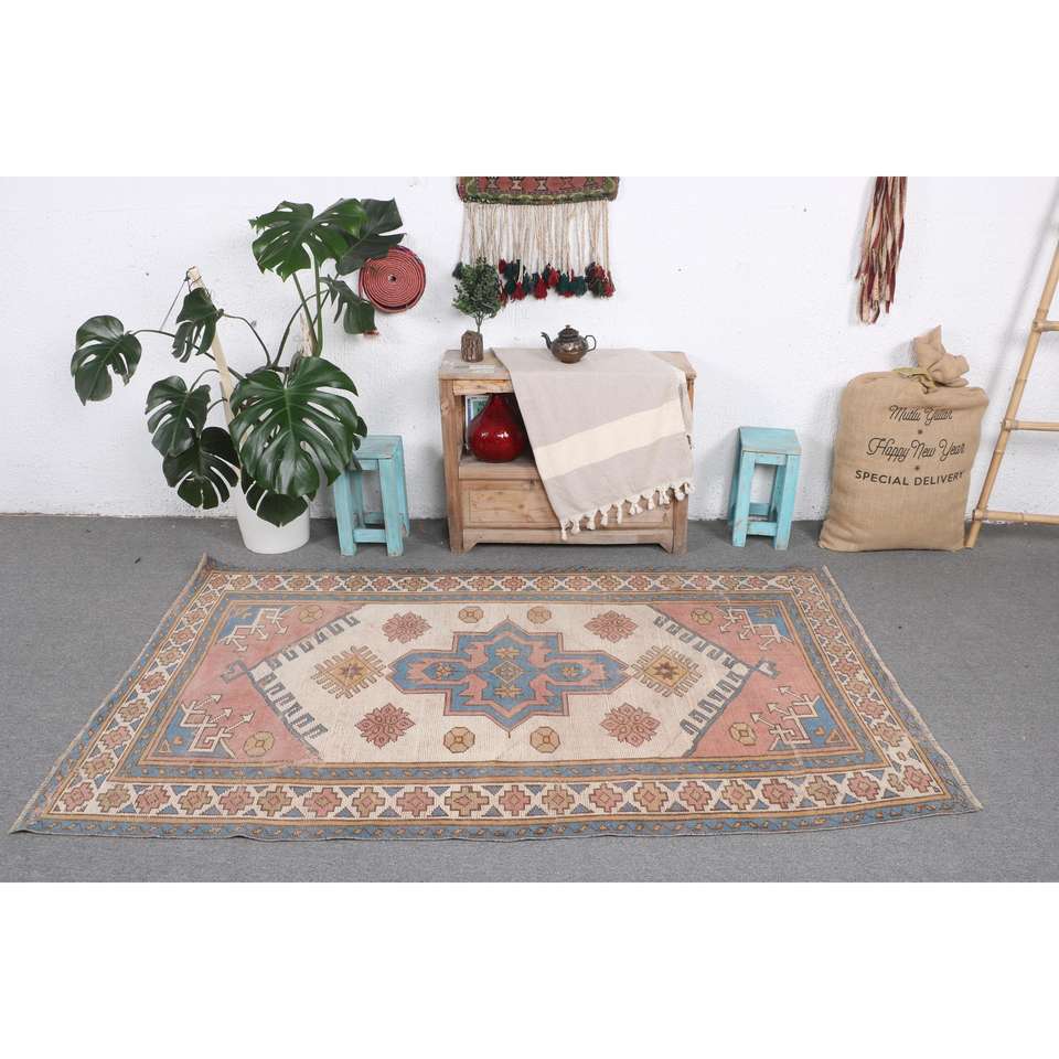Alfombra Turca Vintage de Lana Azul, 3.8x6.7 pies