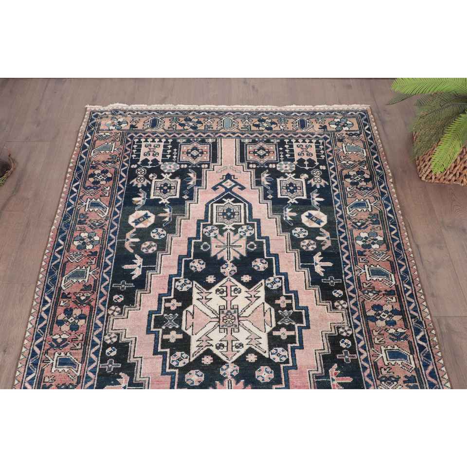 Alfombra Turca Vintage de Lana Azul, 4.3x6.2 pies