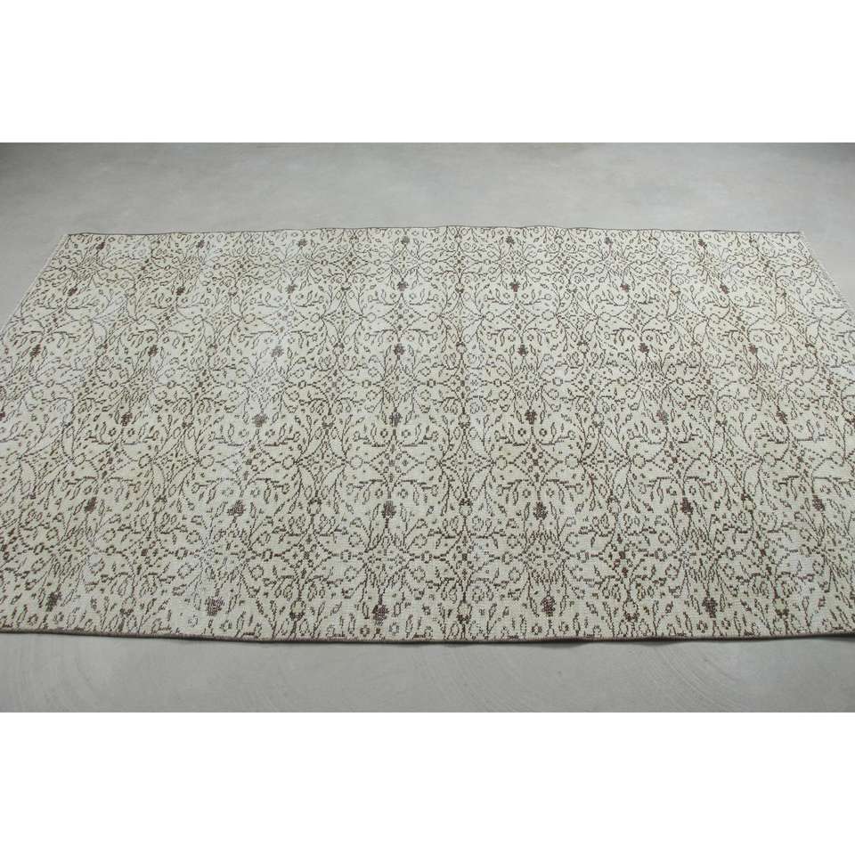 Alfombra Turca Vintage de 4.7x8.2 pies (142x250 cm), Alfombra Blanca de Estilo Suroeste