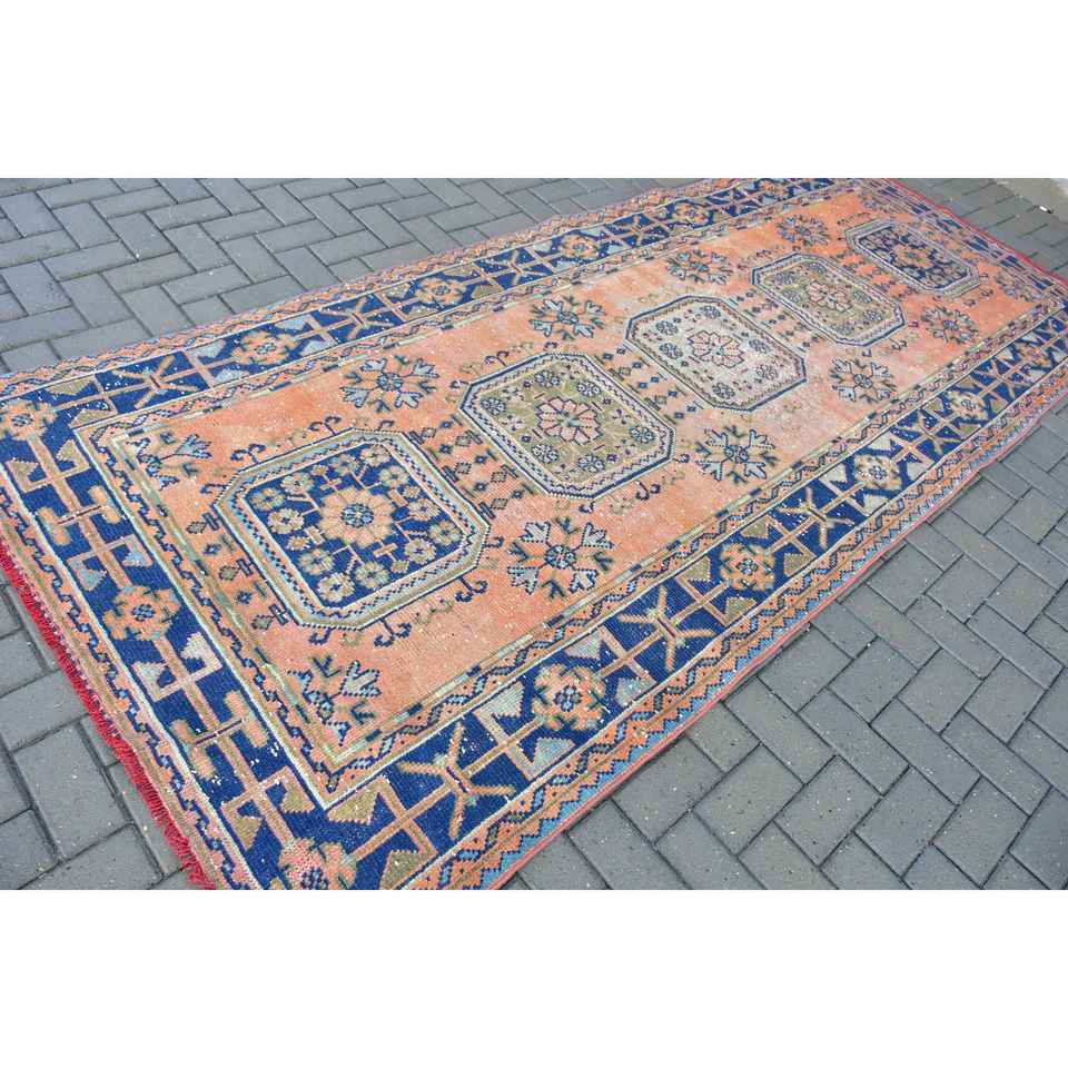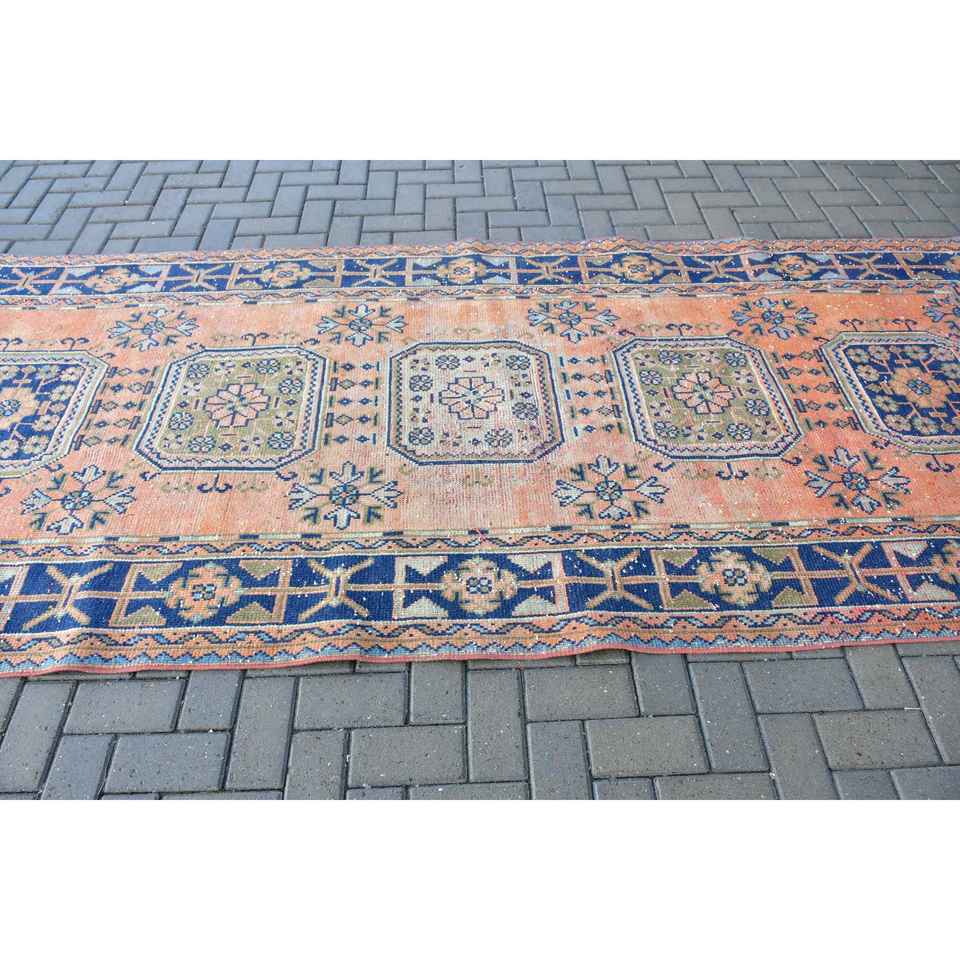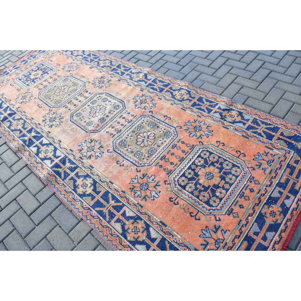 Alfombra Turca Vintage Grande de 4.7x11.3 pies, Alfombra Persa Azul y Naranja