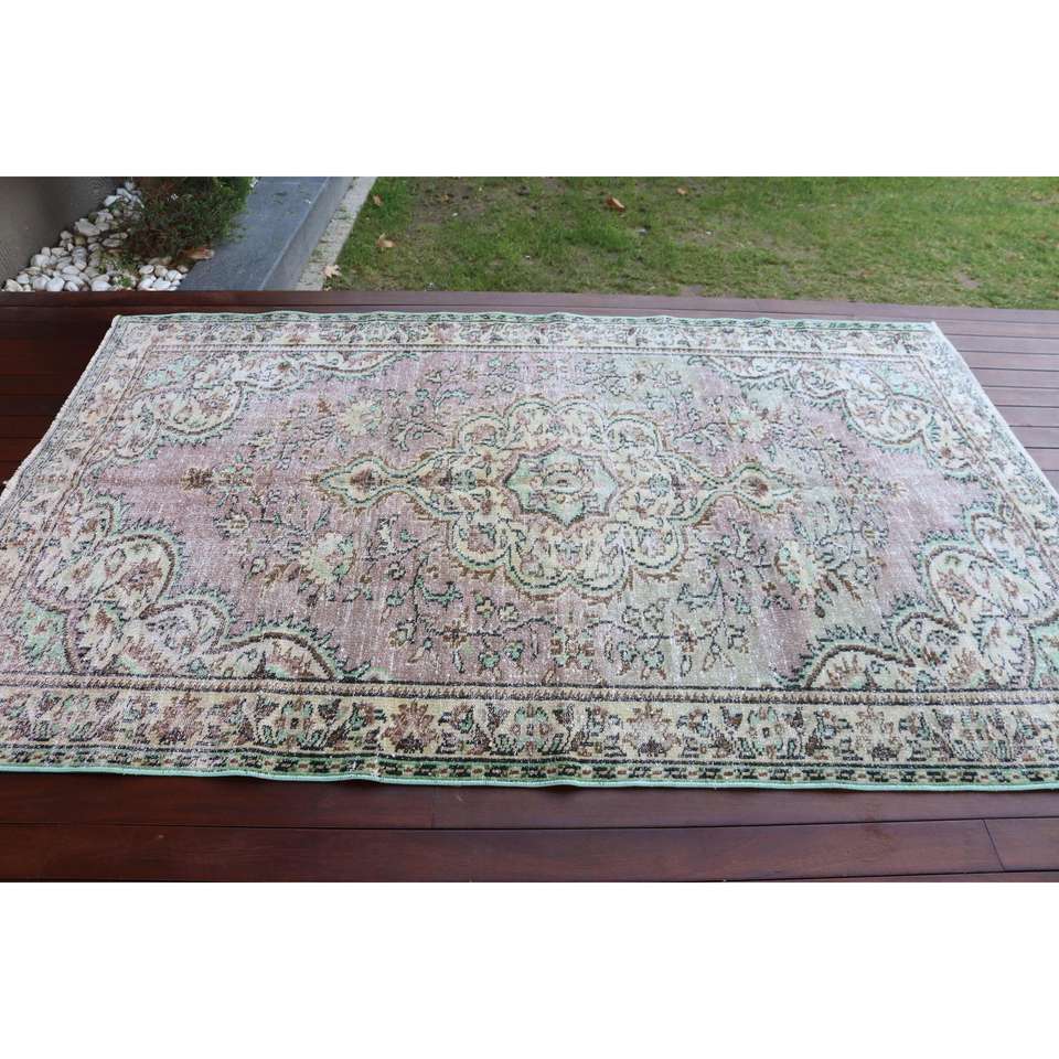 Alfombra Turca Vintage Grande de 5.2x8.1 pies, Alfombra de Lana Verde