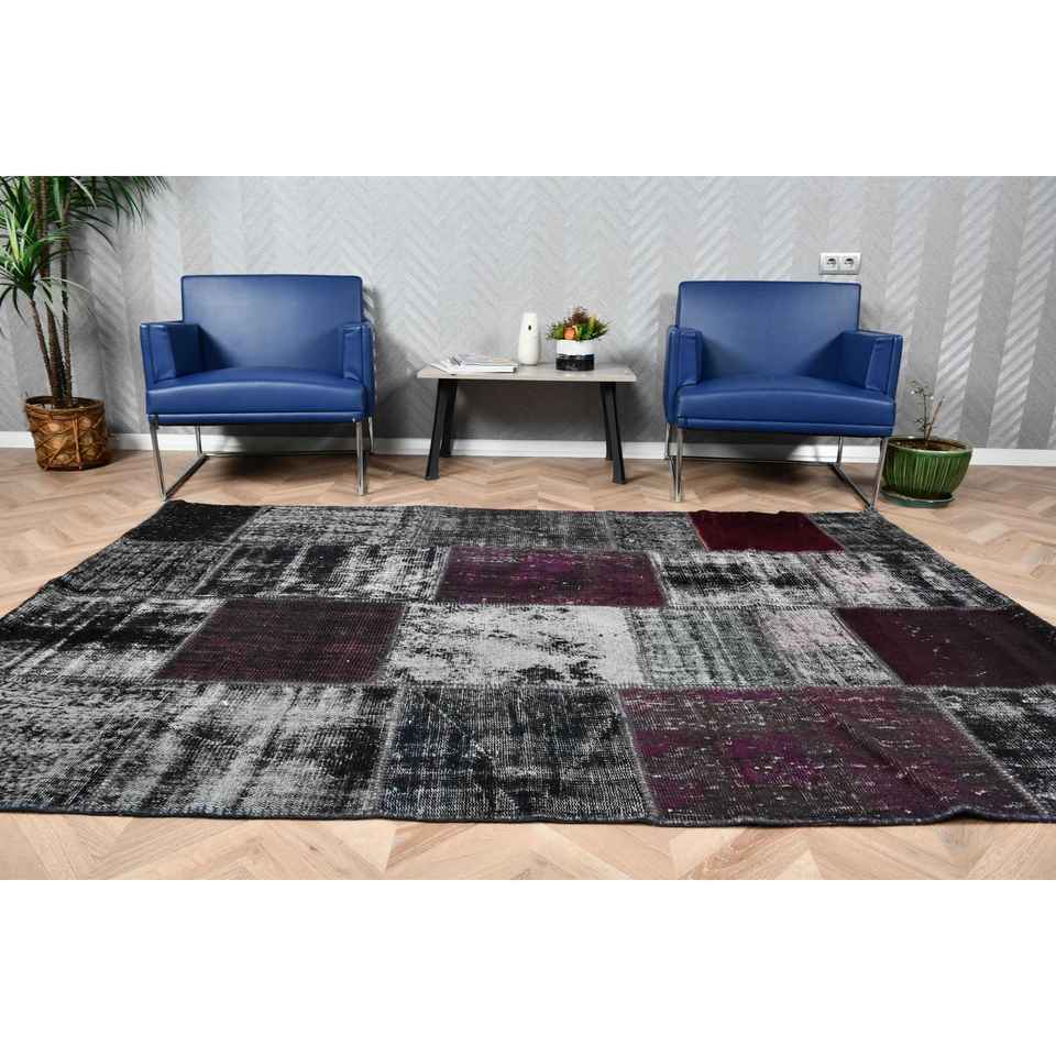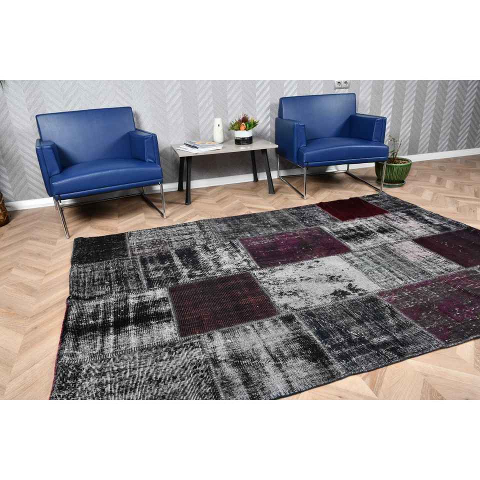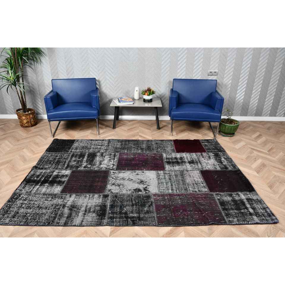 Alfombra Turca Vintage Grande de 5.3x7.7 pies (161x235 cm), Alfombra con Borde Negro