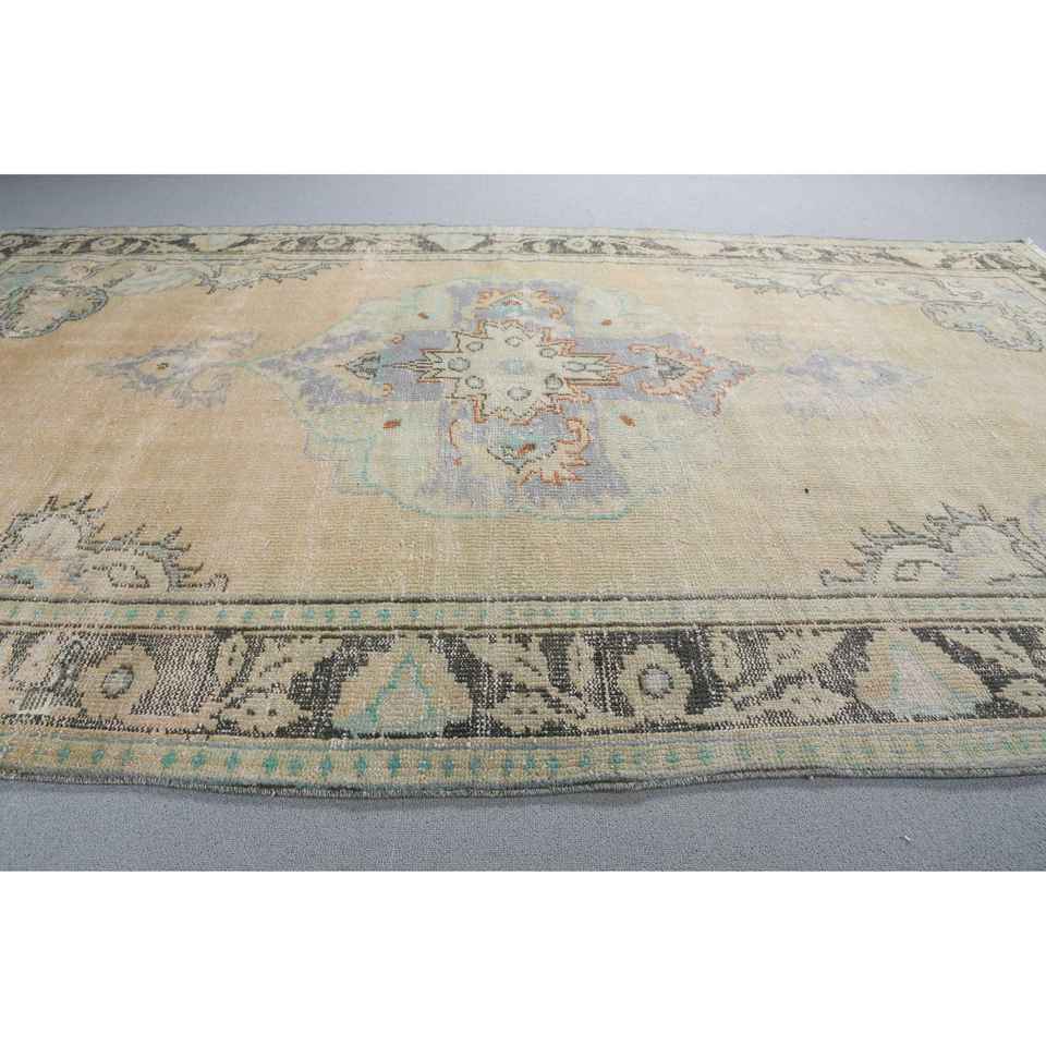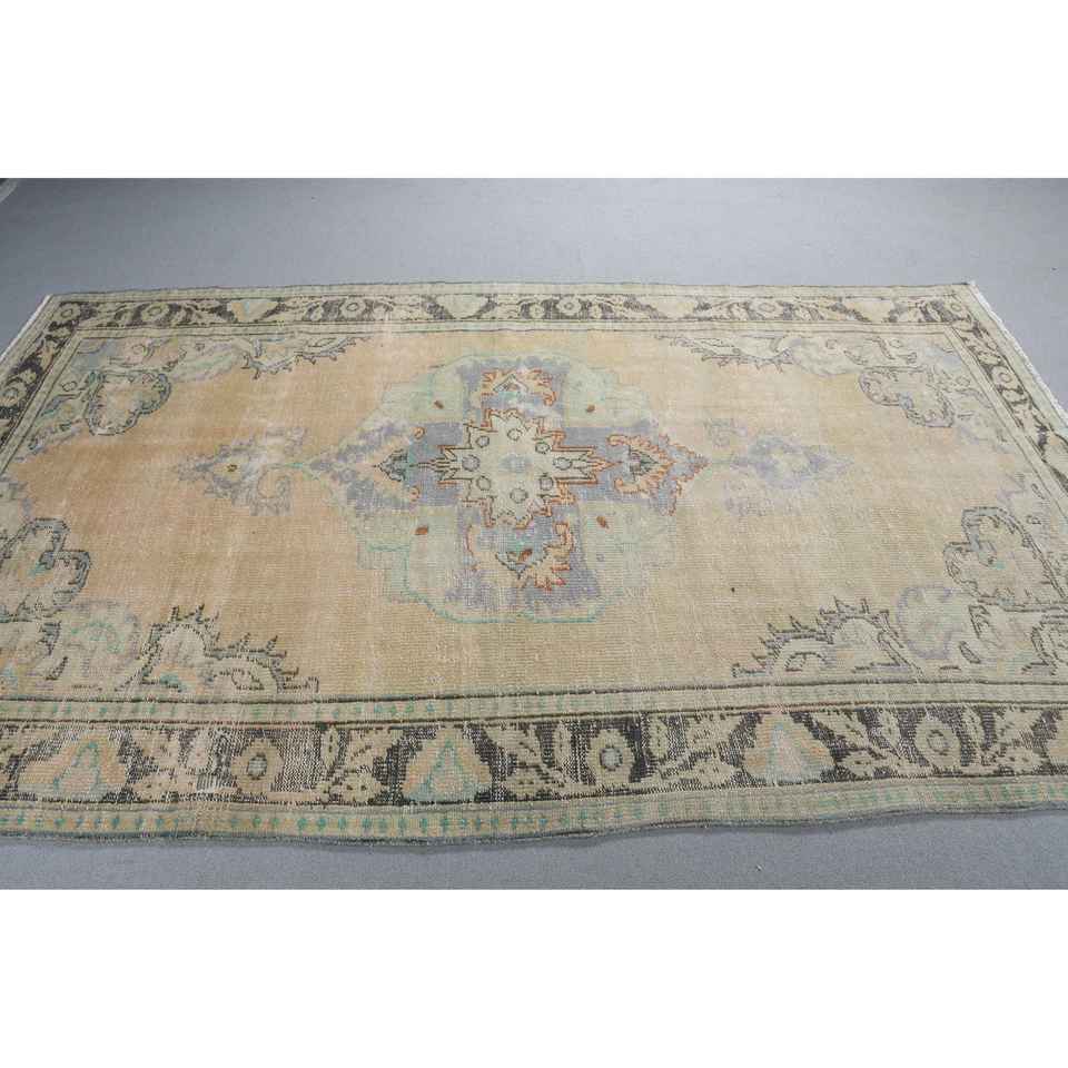 Alfombra Turca Vintage Grande de 5,3x8,8 pies, Alfombra de Lana Azul