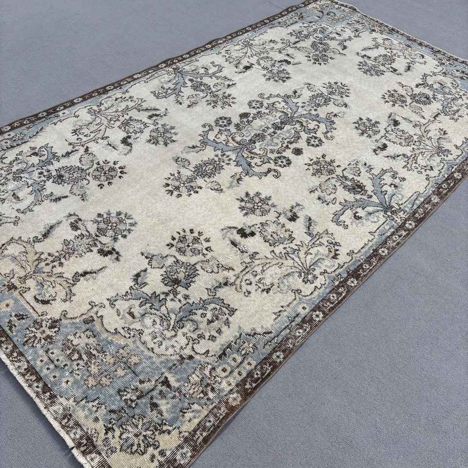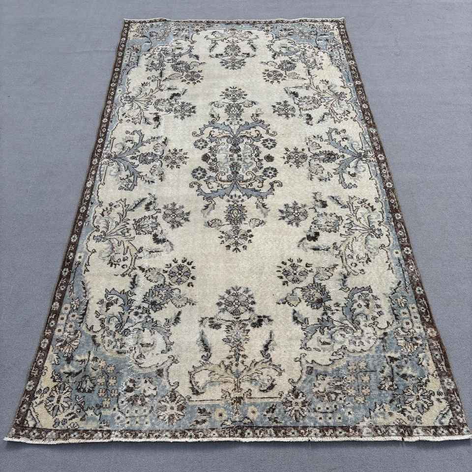 Alfombra Turca Vintage Grande de 5.7x9.8 pies, Alfombra Sólida Azul Gris