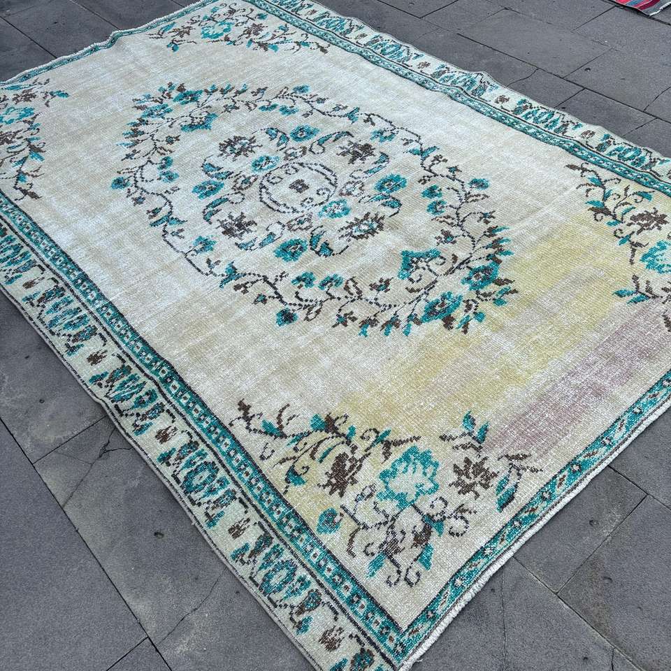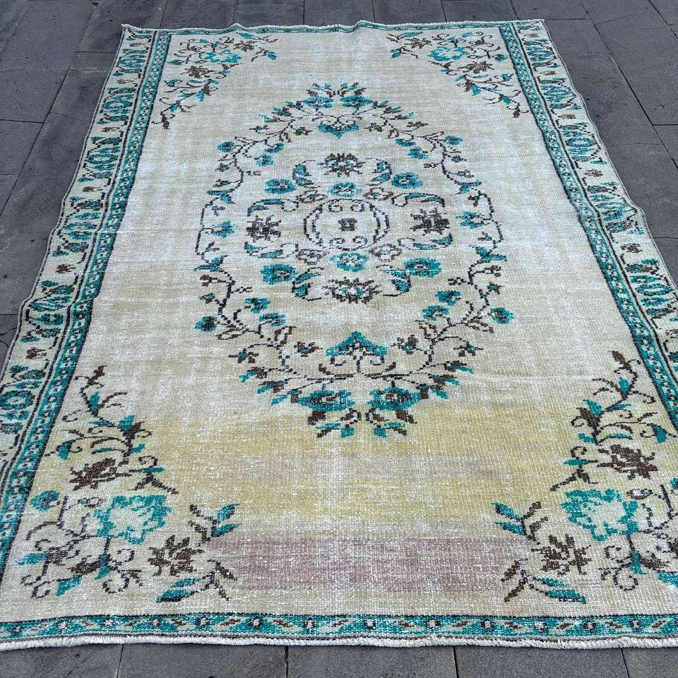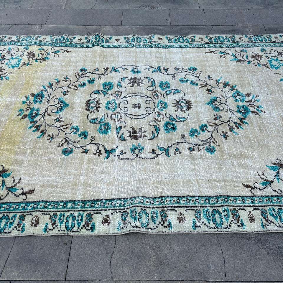 Alfombra Turca Vintage Grande de 5.7x9.7 pies, Alfombra de Lana Azul
