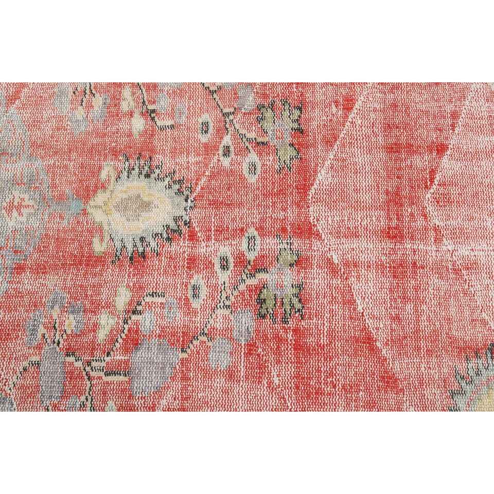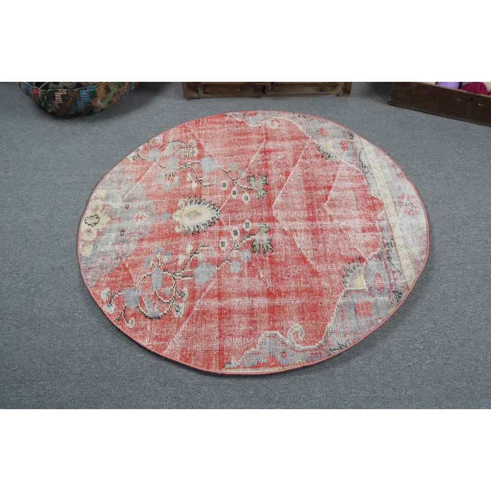 Alfombra Turca Vintage Redonda de 4.5x4.5 pies (136x136 cm), Alfombra Roja Sólida