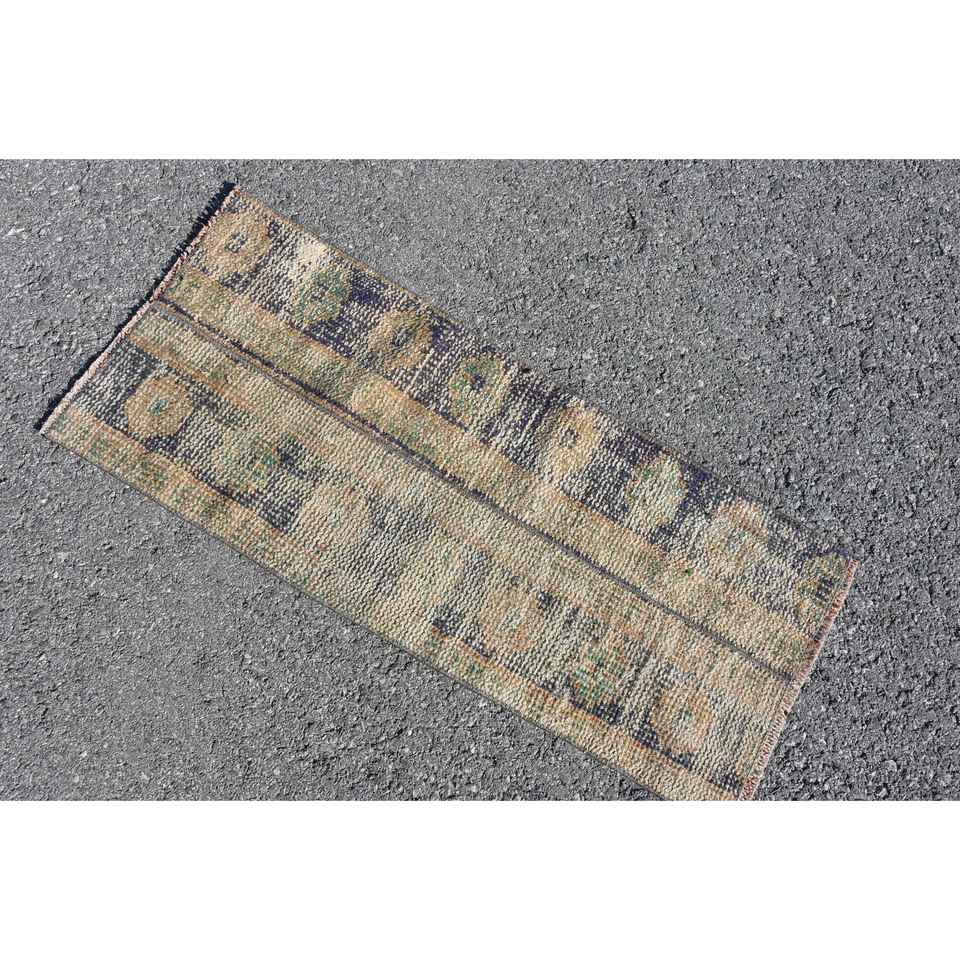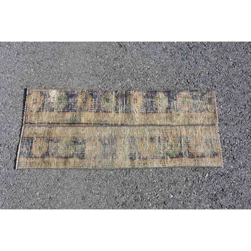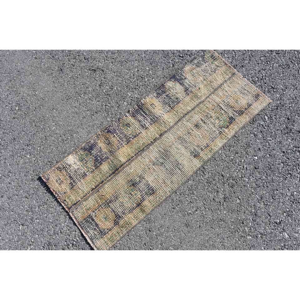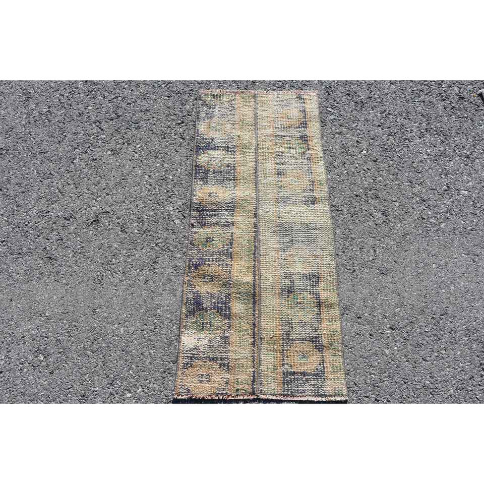 Alfombra Turca Vintage, Alfombra Pequeña de 1.4x3.2 pies, Alfombra con Estampado Animal Azul Verde