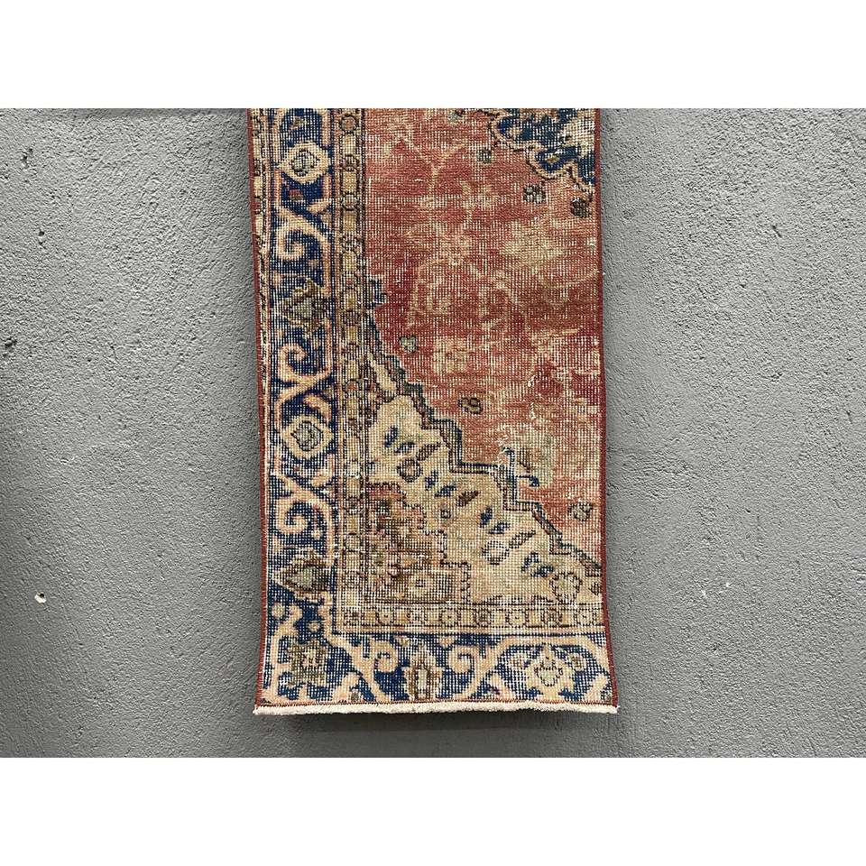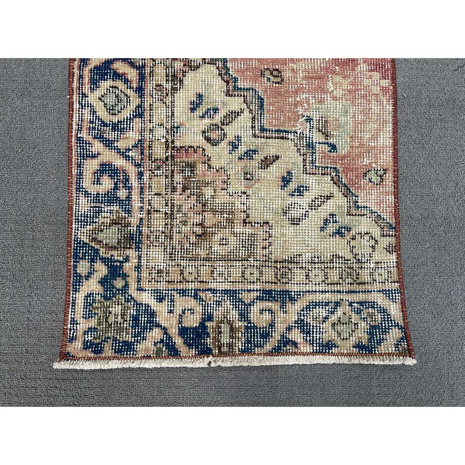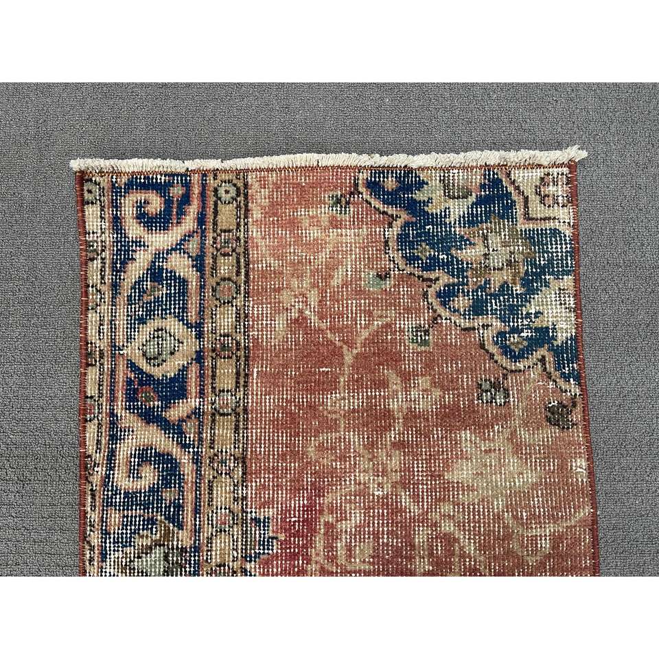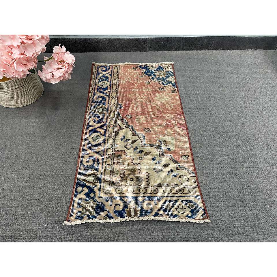 Alfombra Turca Vintage, Alfombra Pequeña de 1.5x2.9 pies, Alfombra de Lana Abstracta Roja y Azul