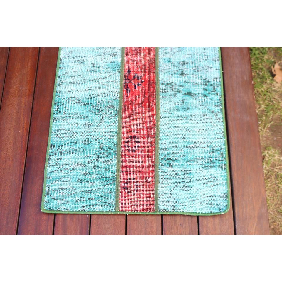 Alfombra Turca Vintage de 1.6x3.8 pies, Alfombra de Lana Azul Sólida