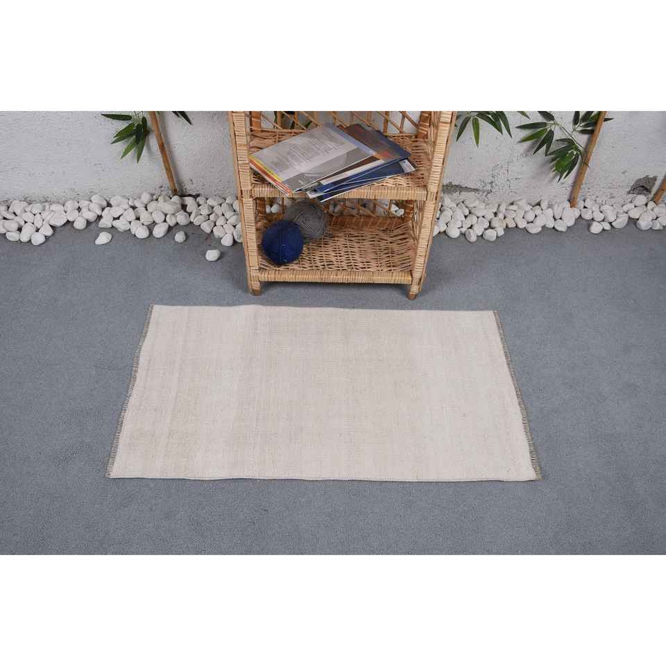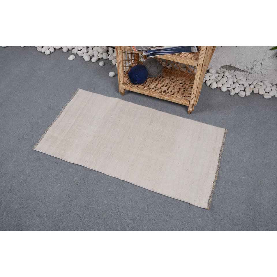 Alfombra Turca Vintage de 1.8x3.3 pies (54.5x100.5 cm), Alfombra Kilim Beige Gris con Diseño de Patchwork