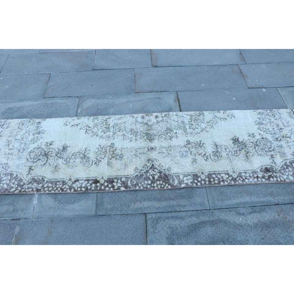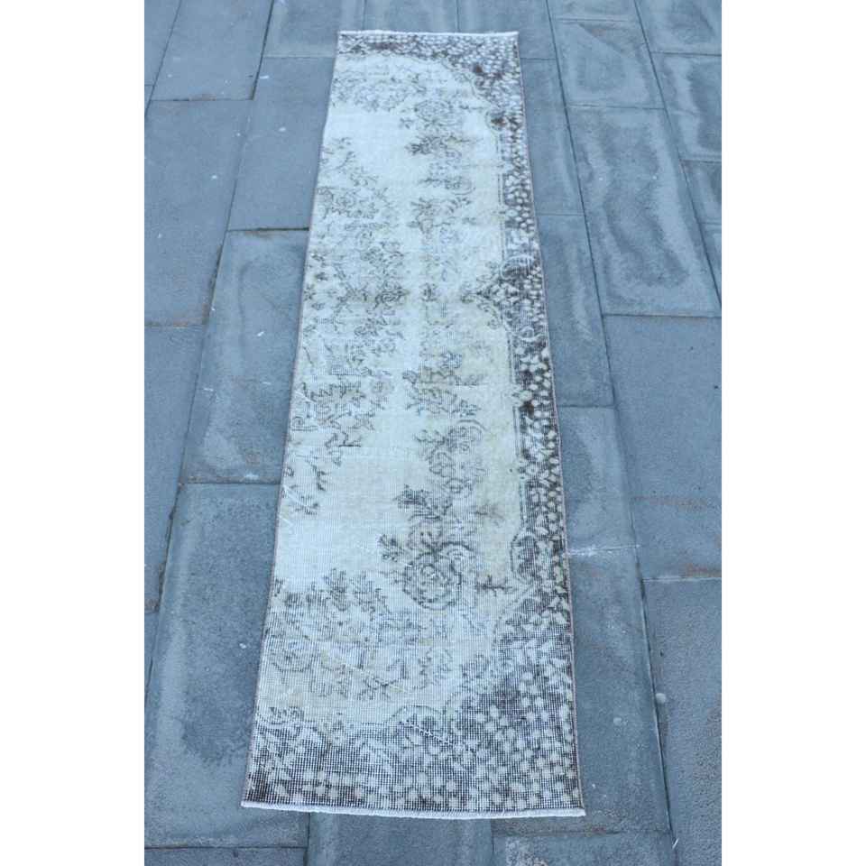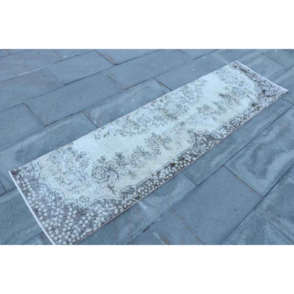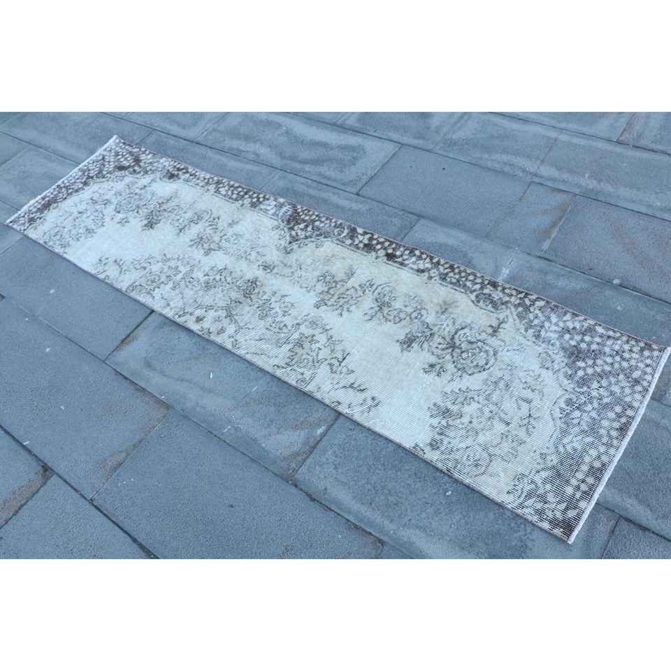 Alfombra Turca Vintage, Alfombra de Pasillo de 1.8x7 pies, Alfombra Blanca con Puntos Grises