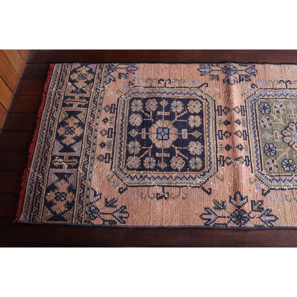 Alfombra Turca Vintage de Lana Azul, 2.5x10.8 pies (76x330 cm)