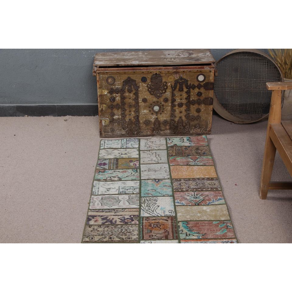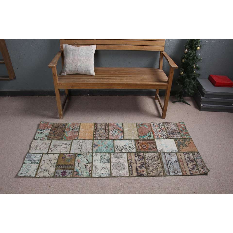 Alfombra Turca Vintage, Alfombra de 2.5x5.3 pies, Alfombra Marrón Verde Estilo Suroeste