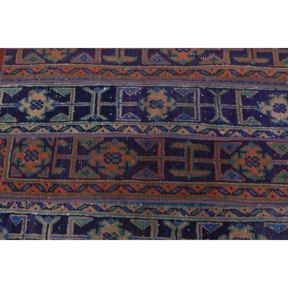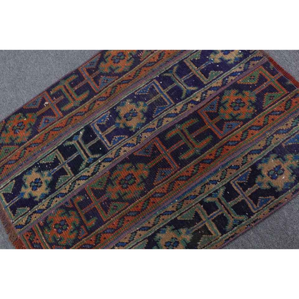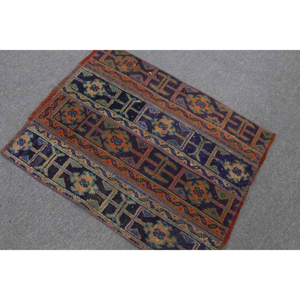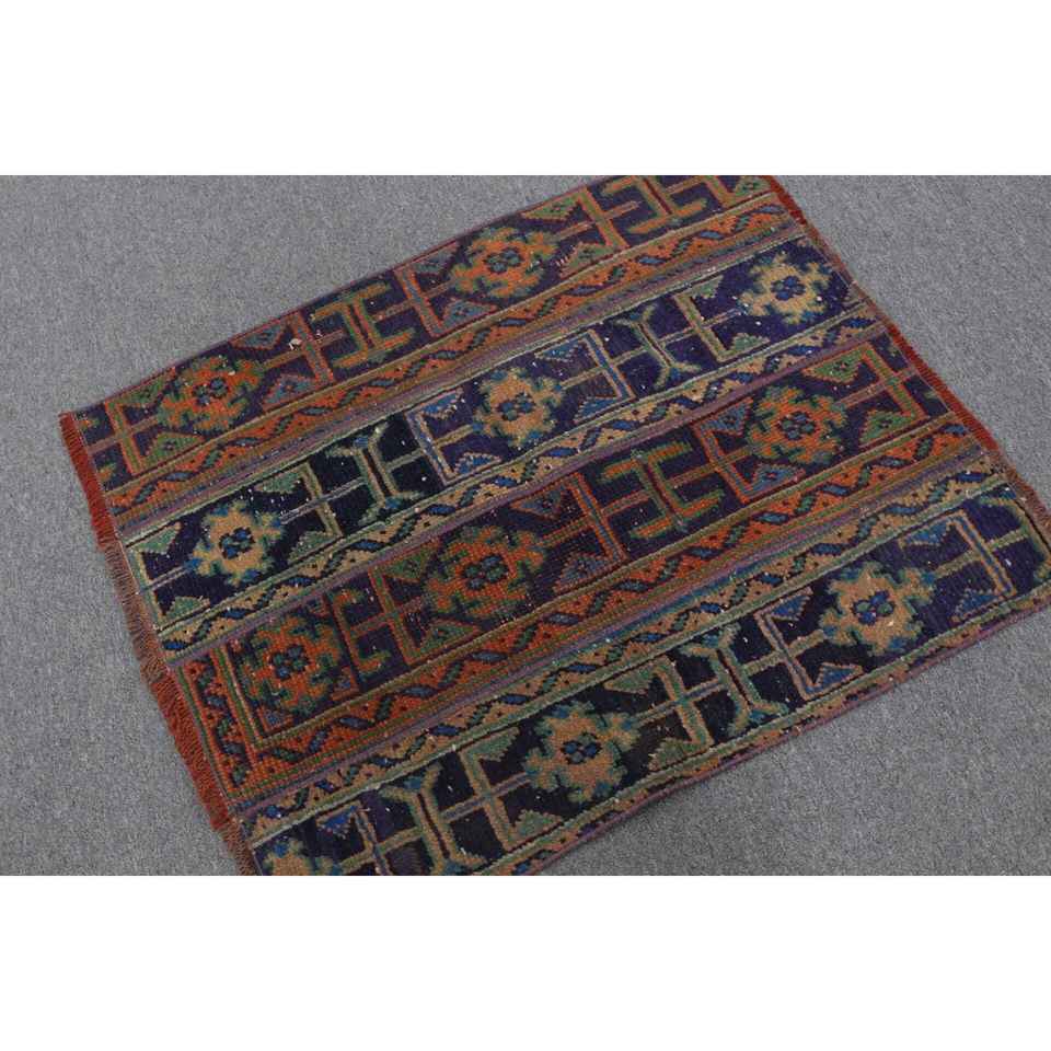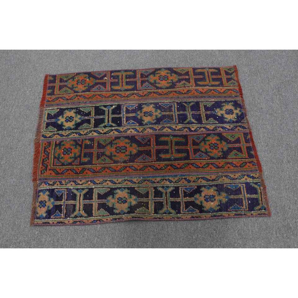 Alfombra Turca Vintage, Alfombra de 2.6x3.2 pies, Alfombra de Lana Ikat Azul