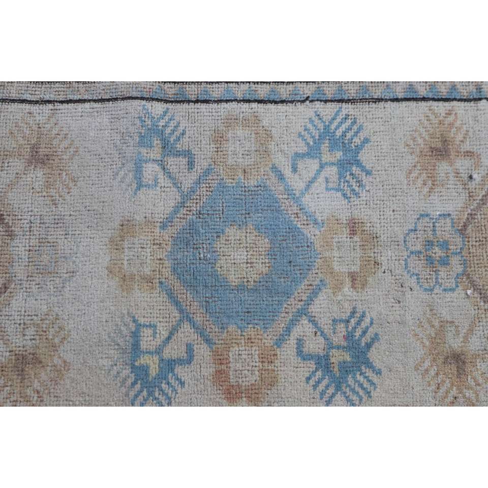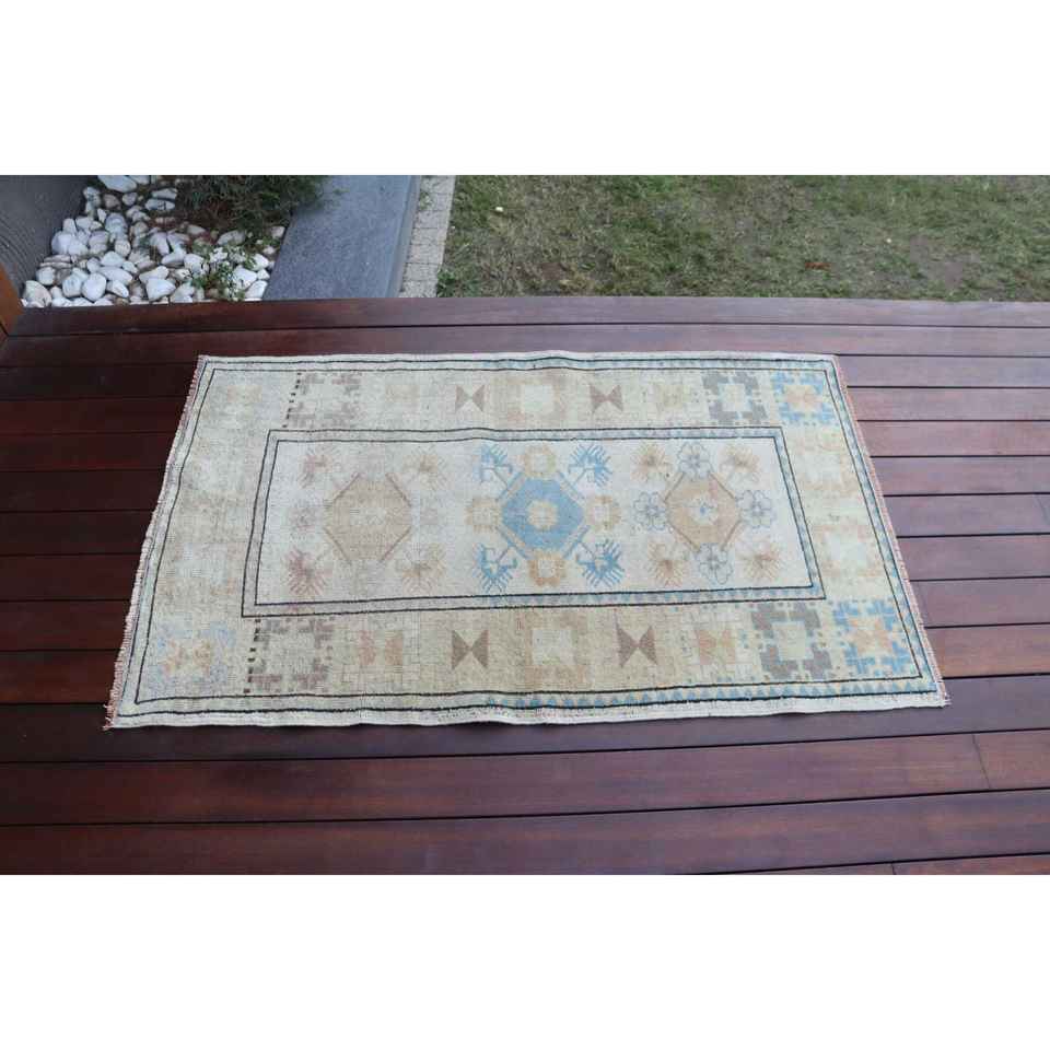 Alfombra Turca Vintage, Alfombra Pequeña de 2.6x4.3 pies, Alfombra con Bordes Azules y Blancos