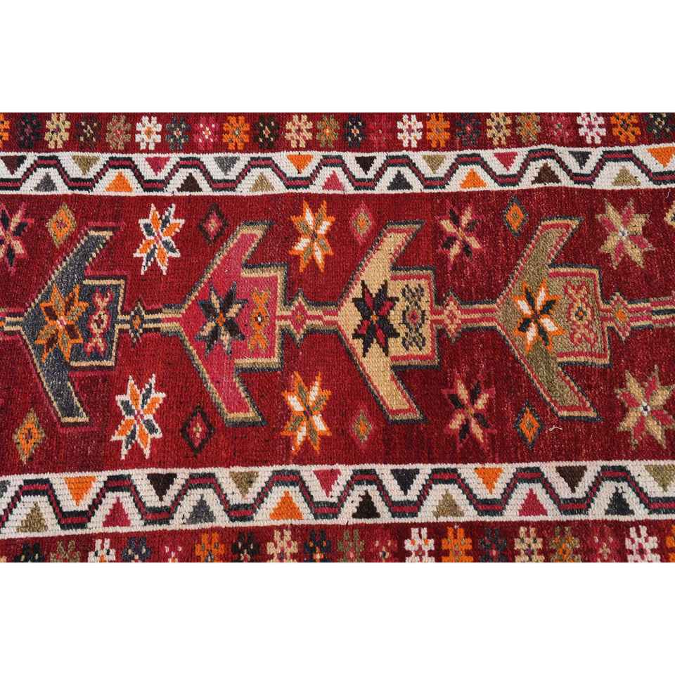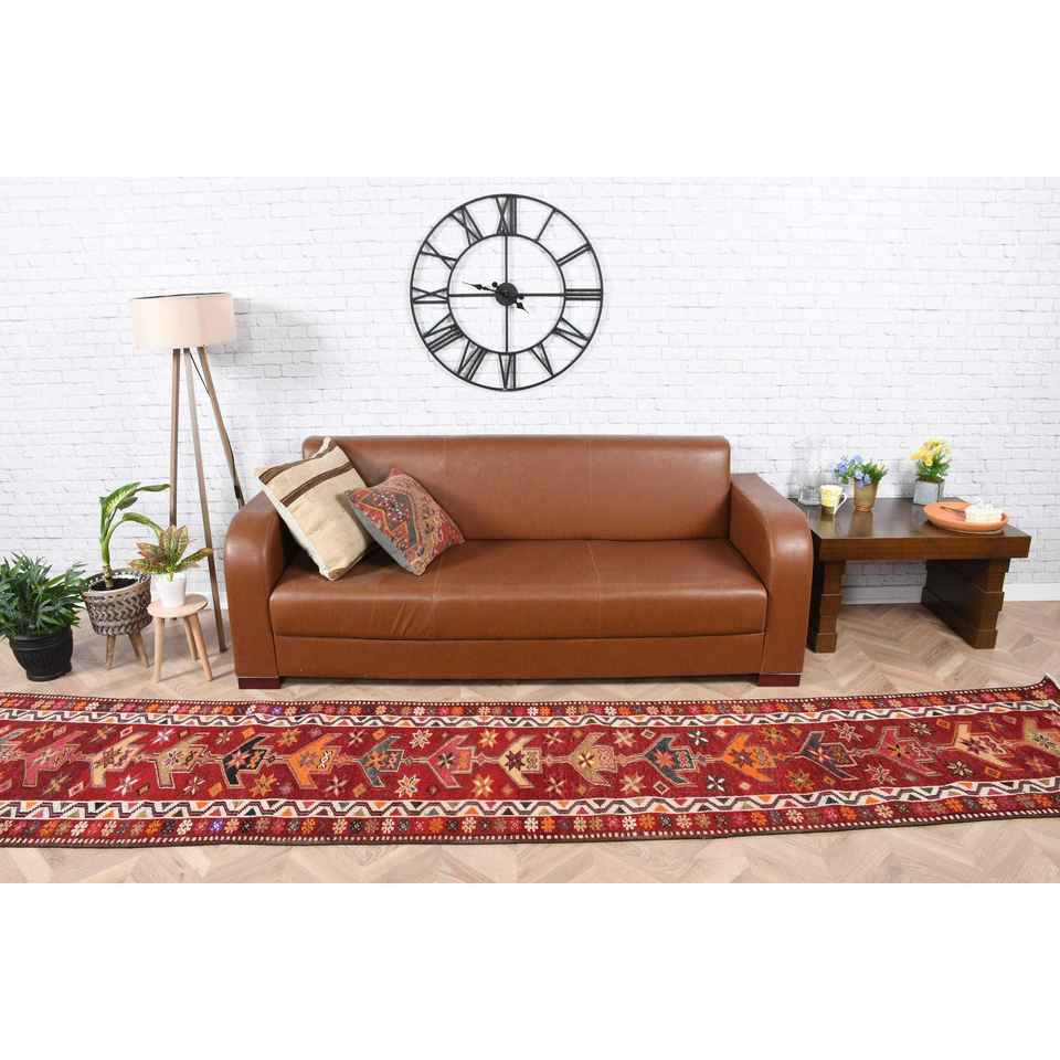 Alfombra Turca Vintage de 2.7x12.9 pies (82x394 cm), Alfombra Herki Roja Naranja con Plantas y Árboles