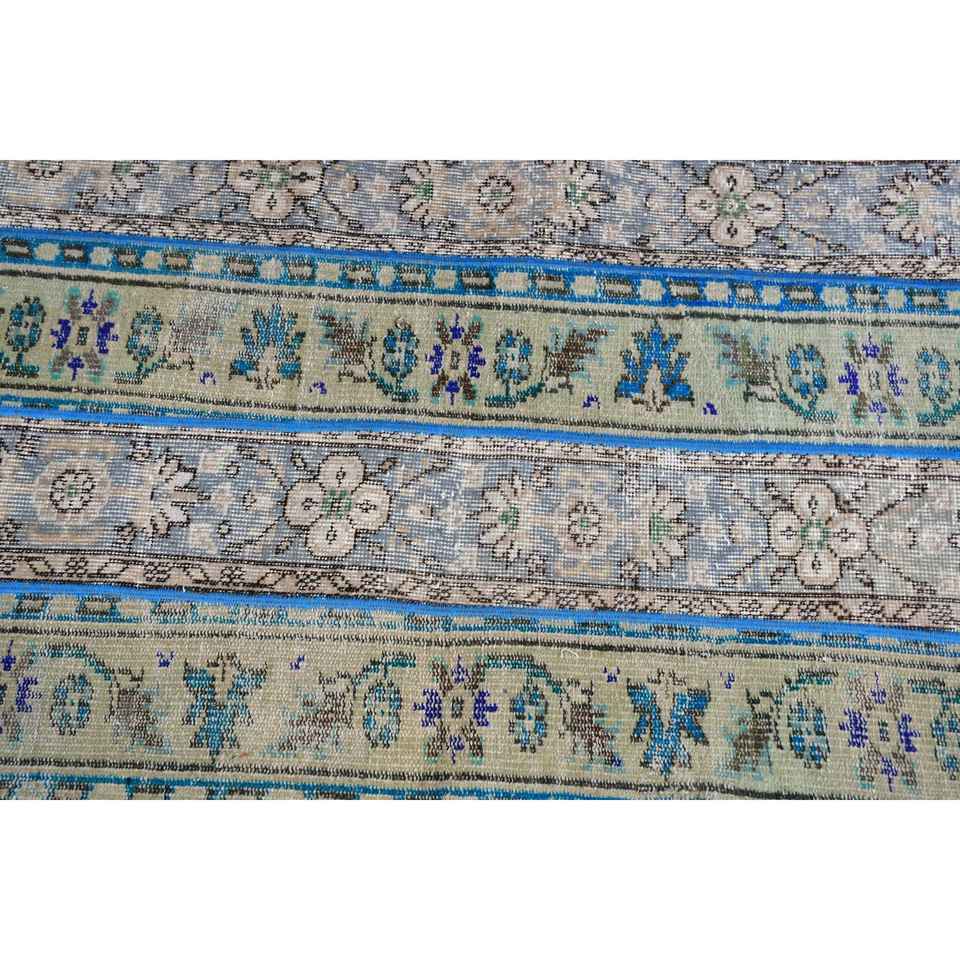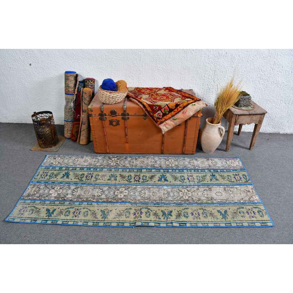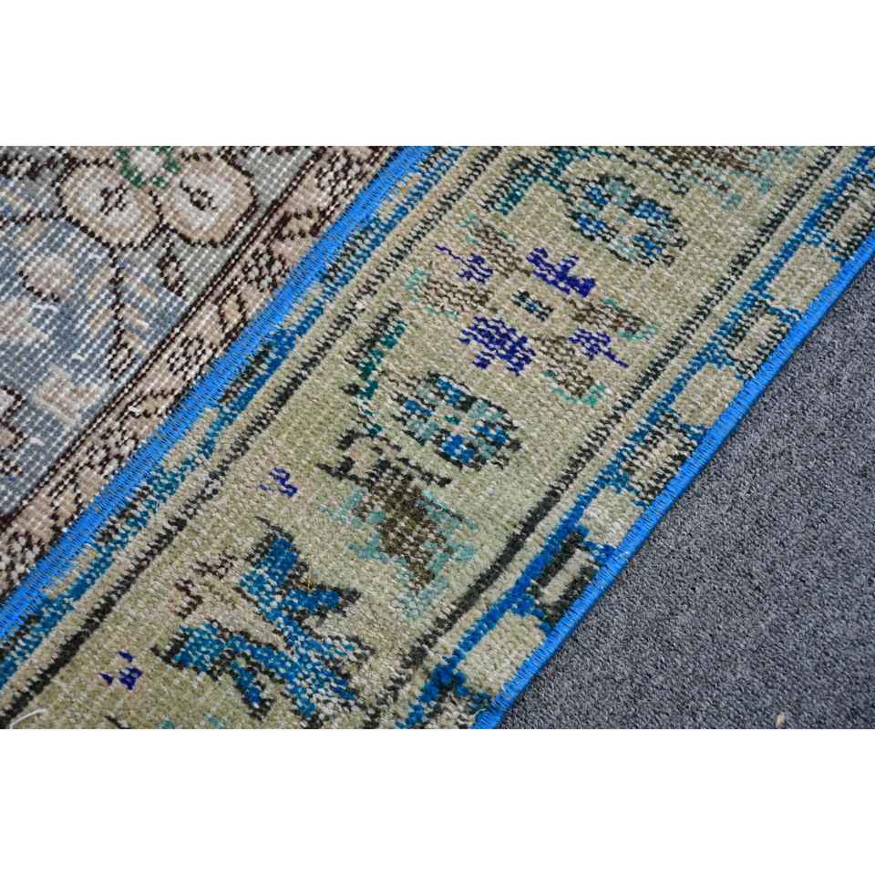 Alfombra Turca Vintage, Alfombra Decorativa de 2.7x6.2 pies, Alfombra de Lana con Diseño de Camuflaje Azul Verde