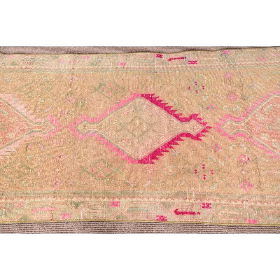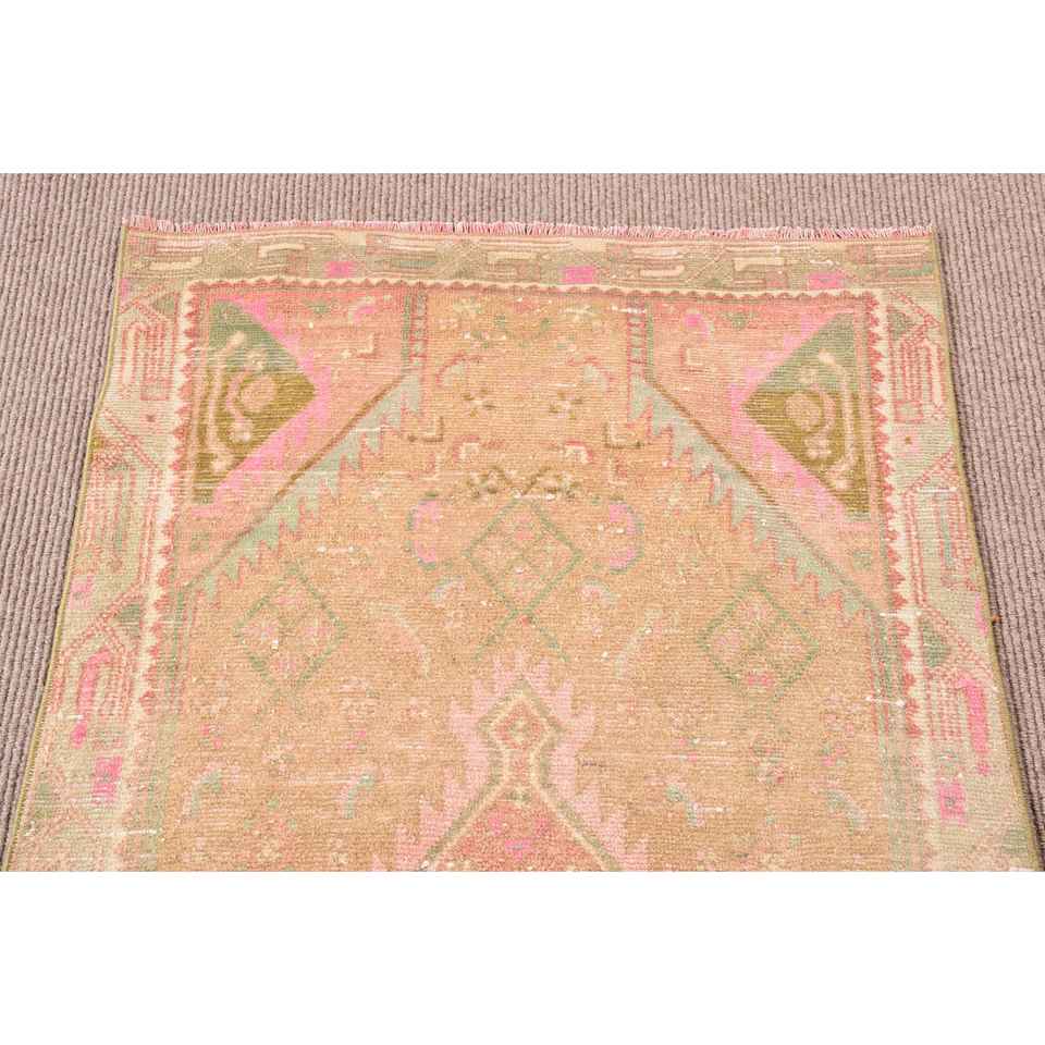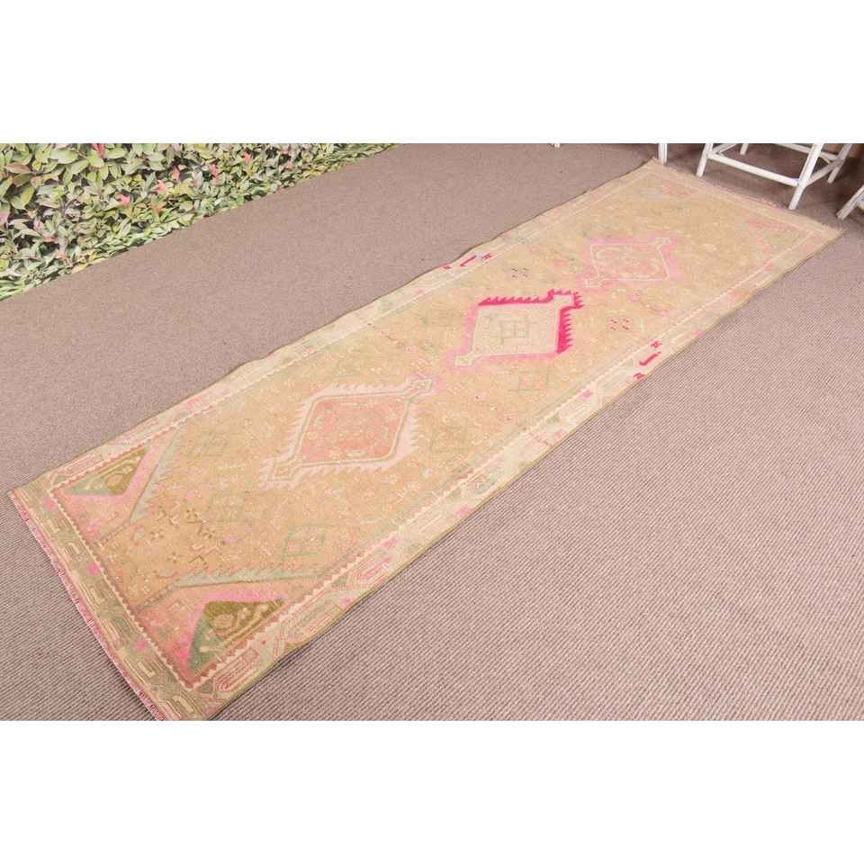 Alfombra Turca Vintage, Alfombra de Pasillo de 2.8x10.2 pies, Alfombra con Diseño de Plantas y Árboles en Tonos Rosa y Verde