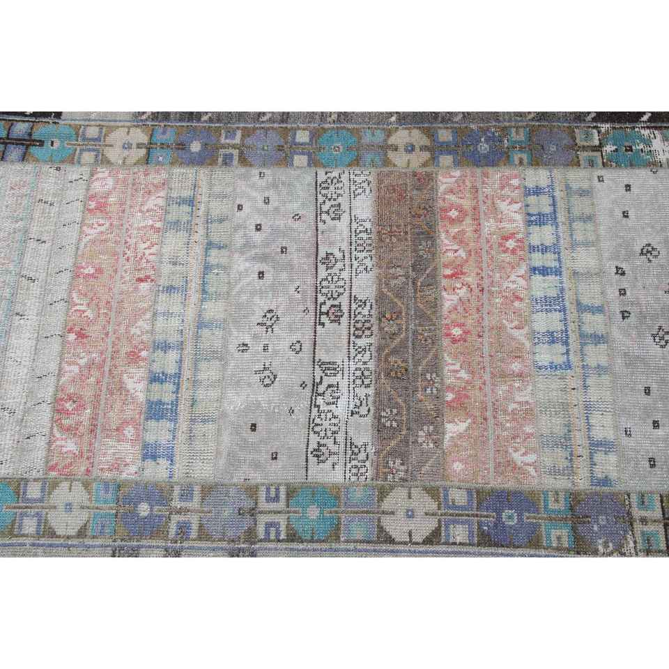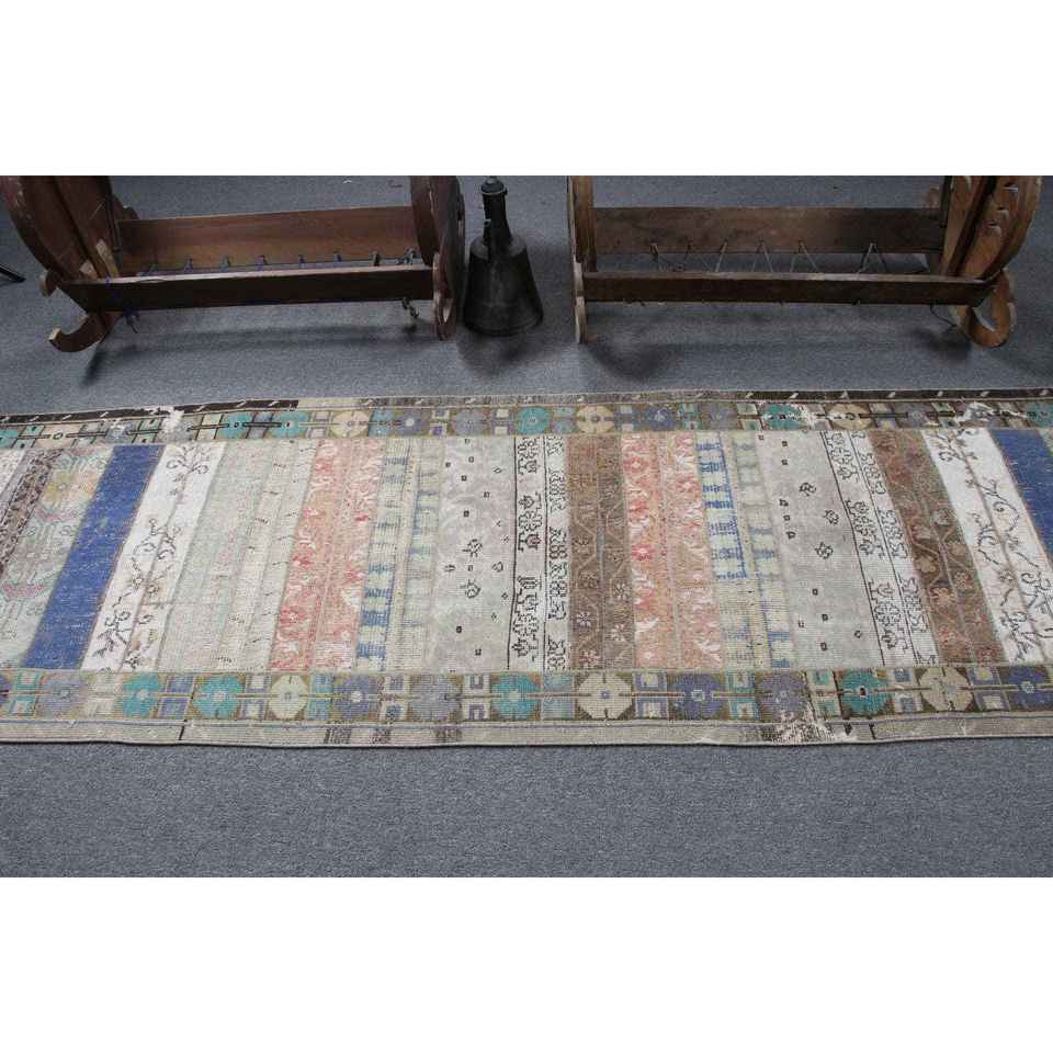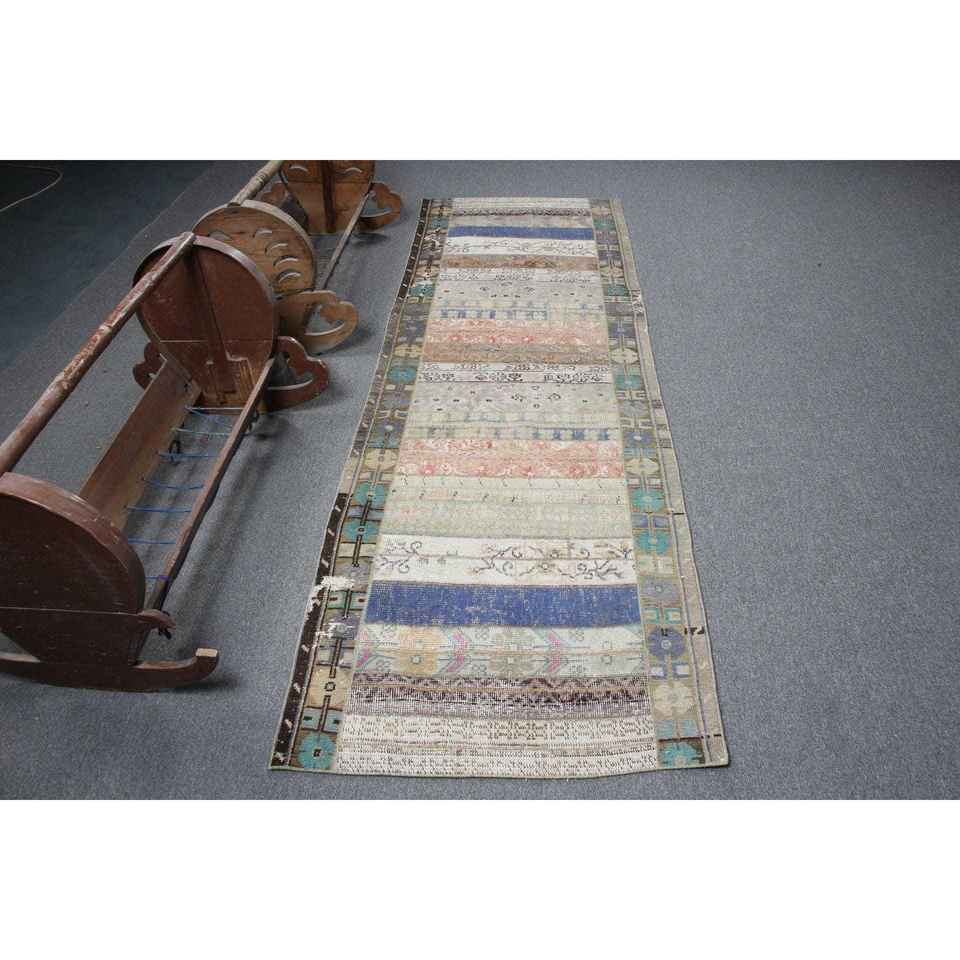 Alfombra Turca Vintage, Alfombra de 2.8x8.9 pies, Alfombra Azul con Estampado Animal
