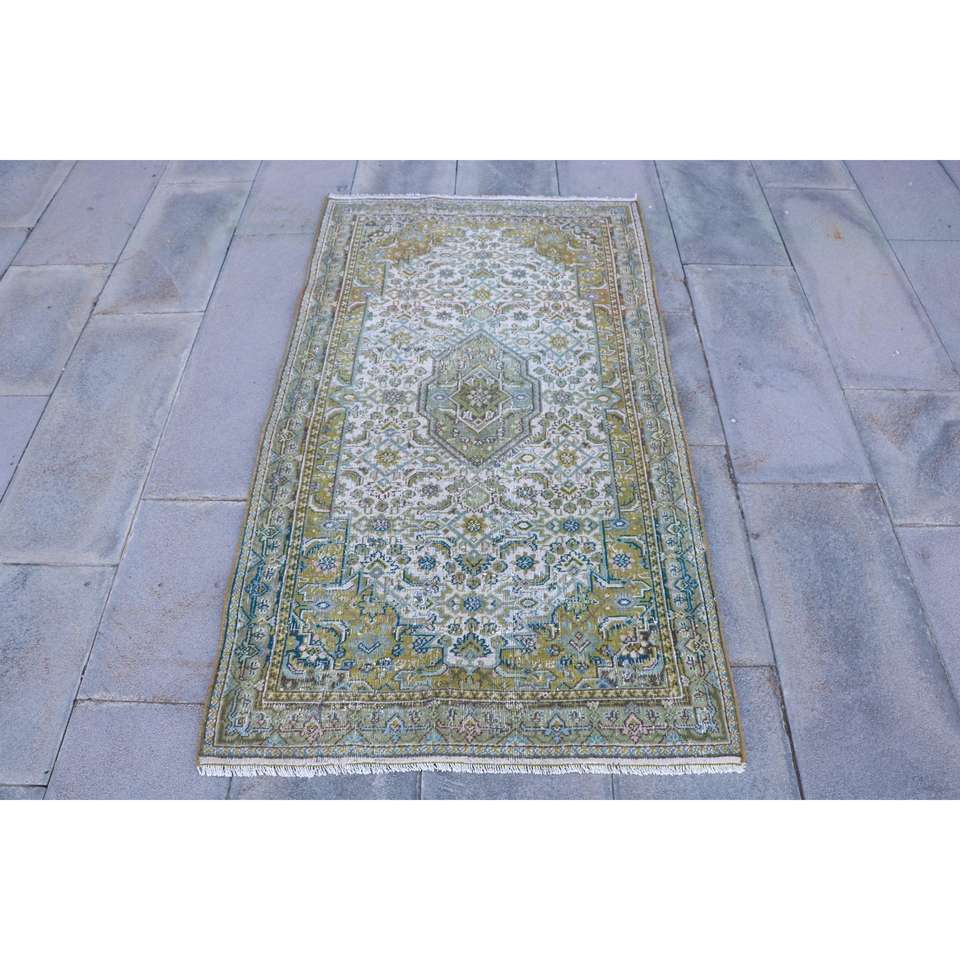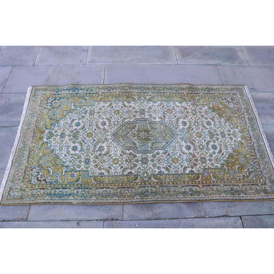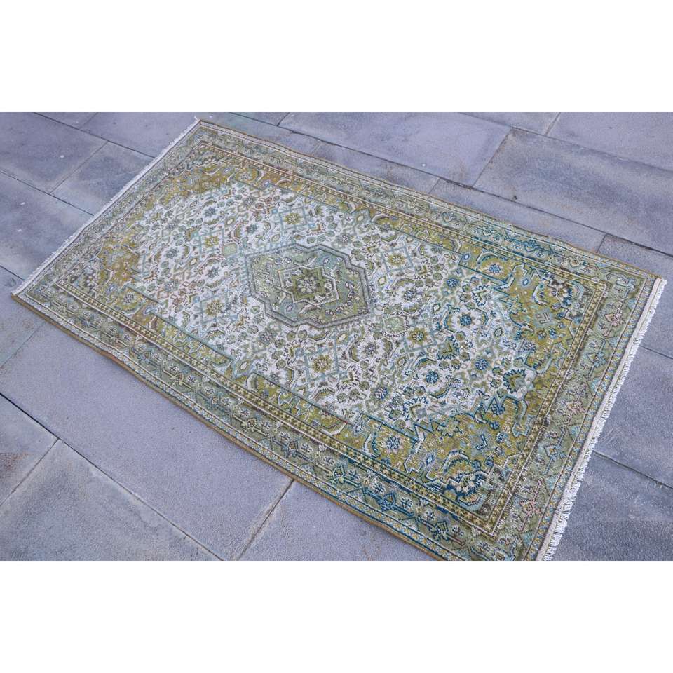 Alfombra Turca Vintage, Alfombra Decorativa de 2.9x5.2 pies, Alfombra a Rayas Azul Verde