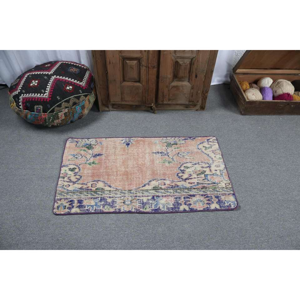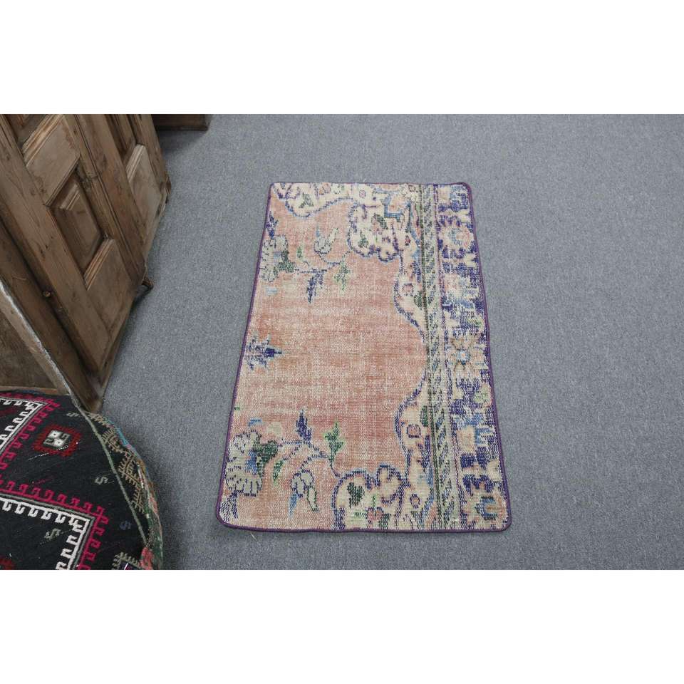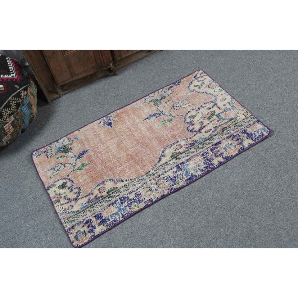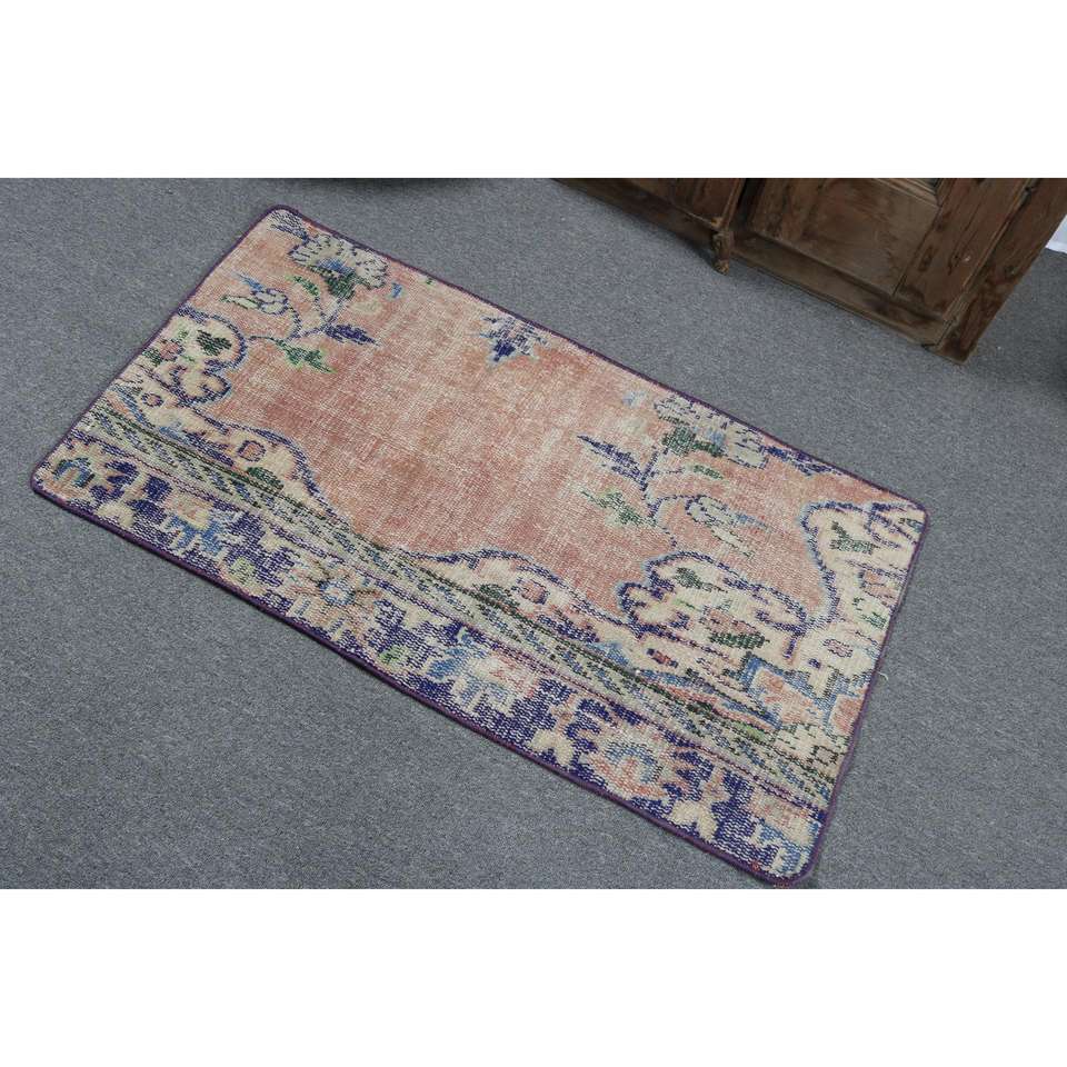 Alfombra Turca Vintage, Alfombra de 2x3.6 pies, Alfombra Pequeña Azul con Diseño de Camuflaje