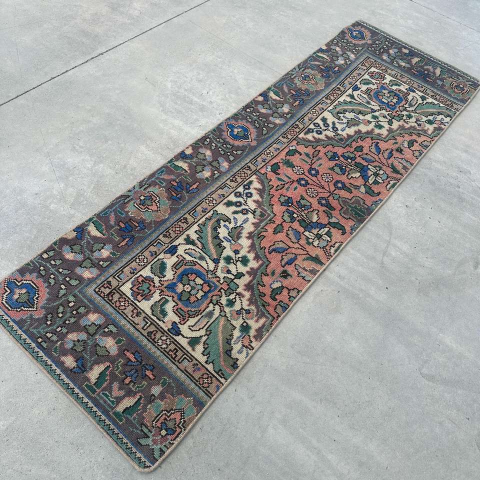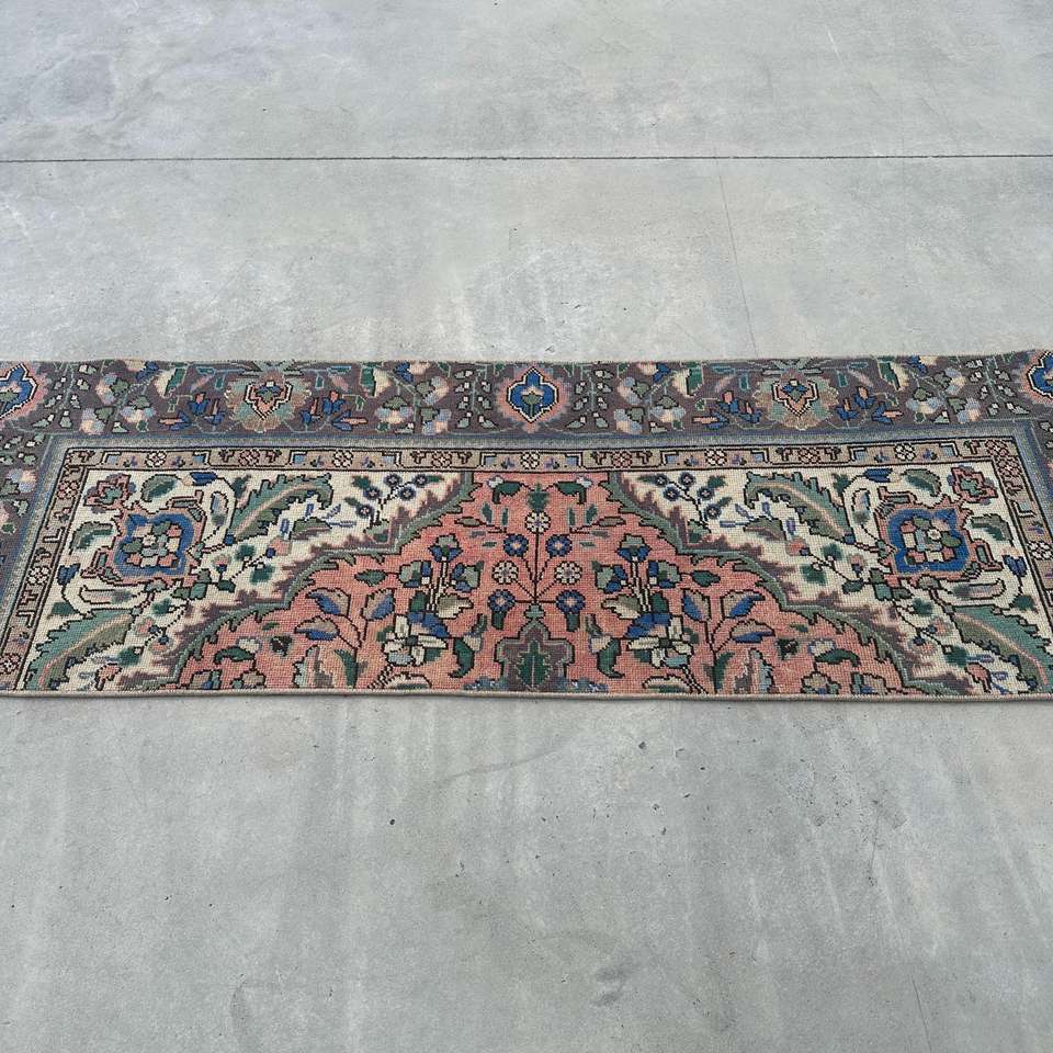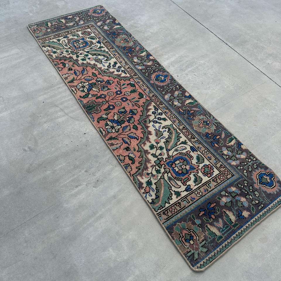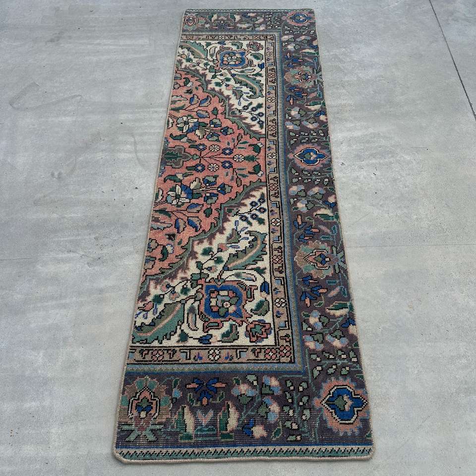 Alfombra Turca Vintage, Alfombra de Pasillo de 2x6 pies, Alfombra de Lana con Diseño Floral Azul y Rojo