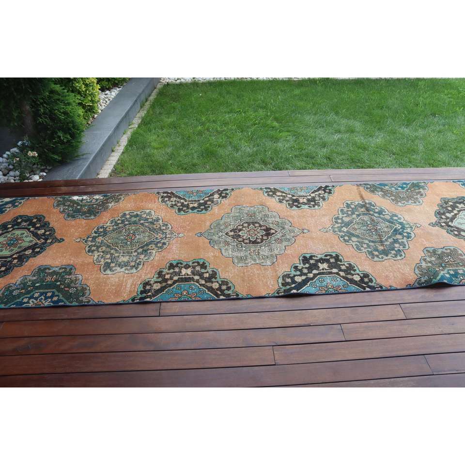 Alfombra Turca Vintage de Lana Azul, 3,2x11,5 pies (99x349 cm)