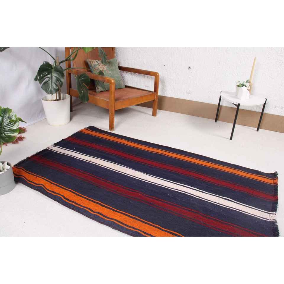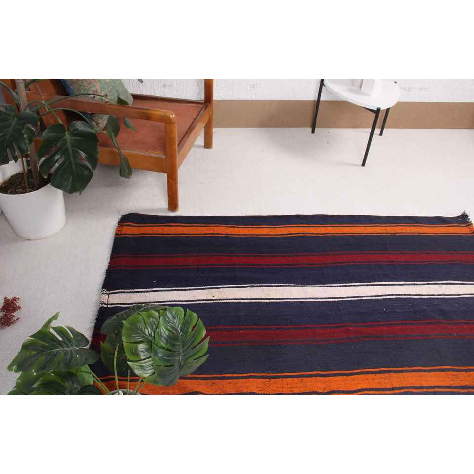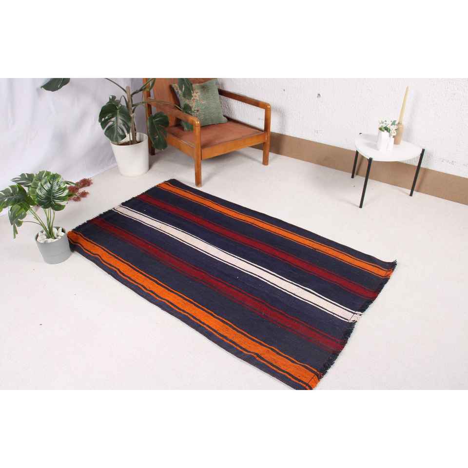 Alfombra Turca Vintage, Alfombra Kilim de 3.2x5.4 pies, Alfombra con Parches de Color Azul