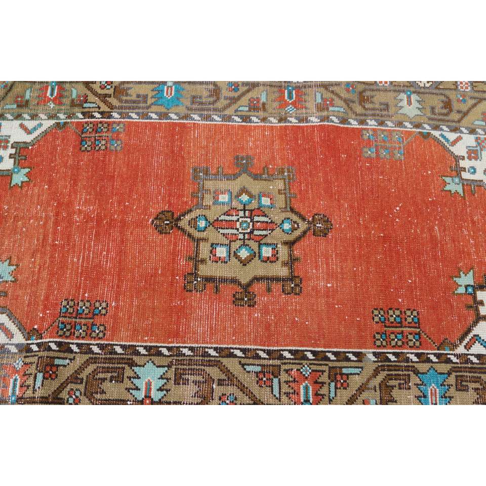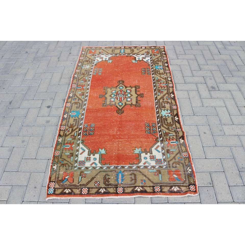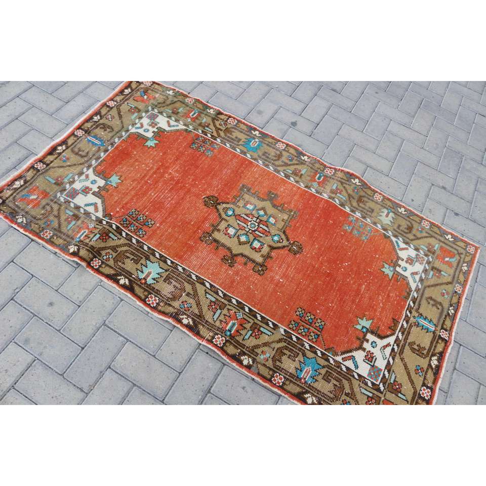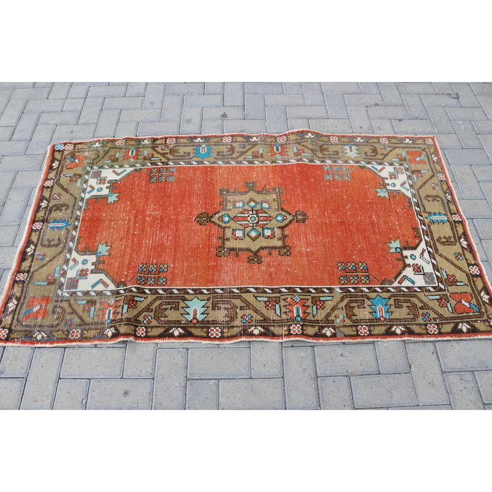 Alfombra Turca Vintage, Alfombra de 3.2x5.7 pies, Alfombra Abstracta con Detalles Rojos