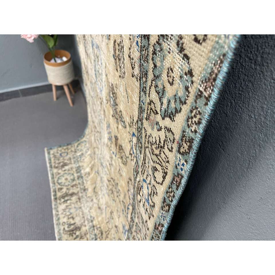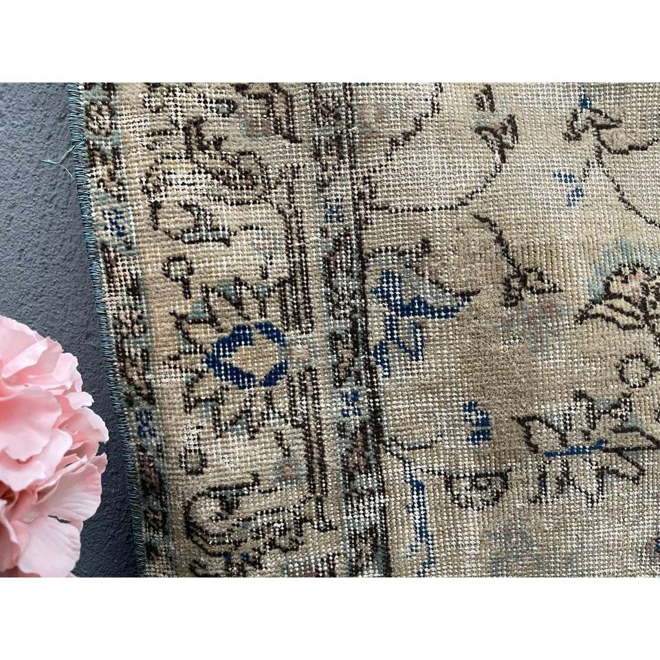 Alfombra Turca Vintage, Alfombra de 3.6x7.1 pies, Alfombra con Bordes Azules