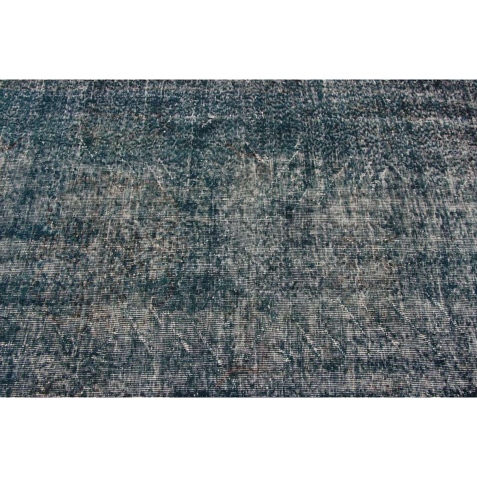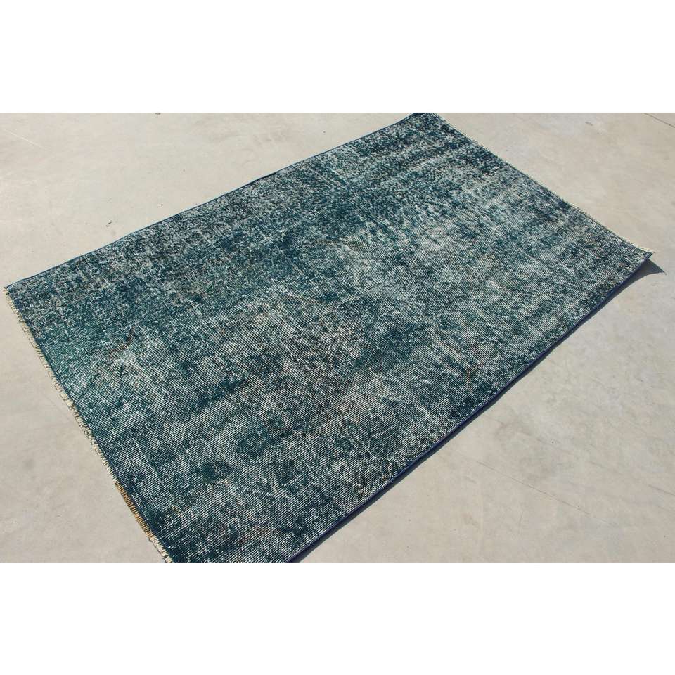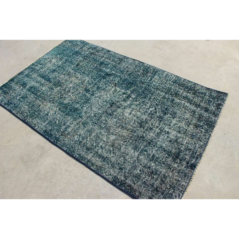 Alfombra Turca Vintage, Alfombra de 3.8x6.2 pies, Alfombra con Acentos Azules y Diseño de Puntos
