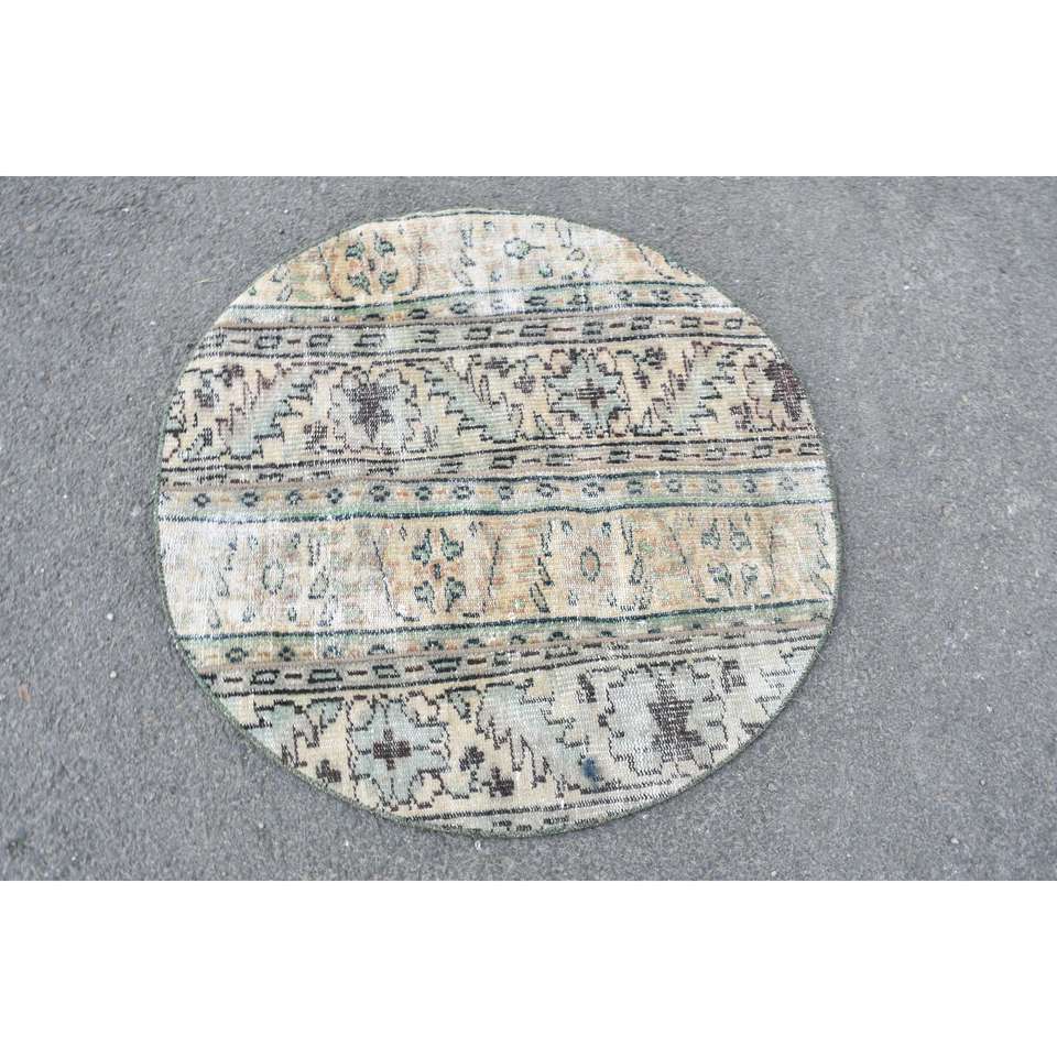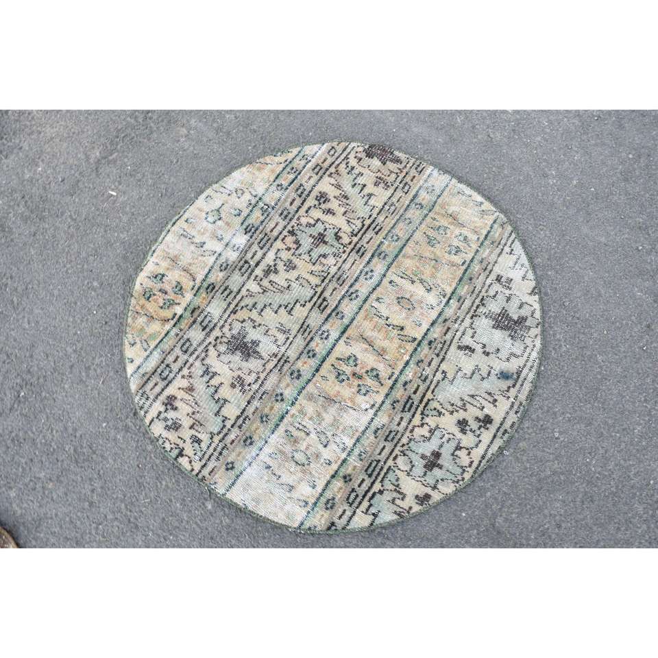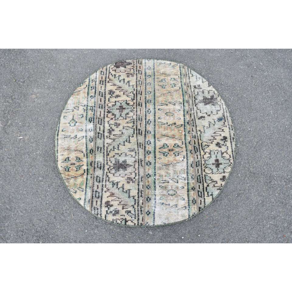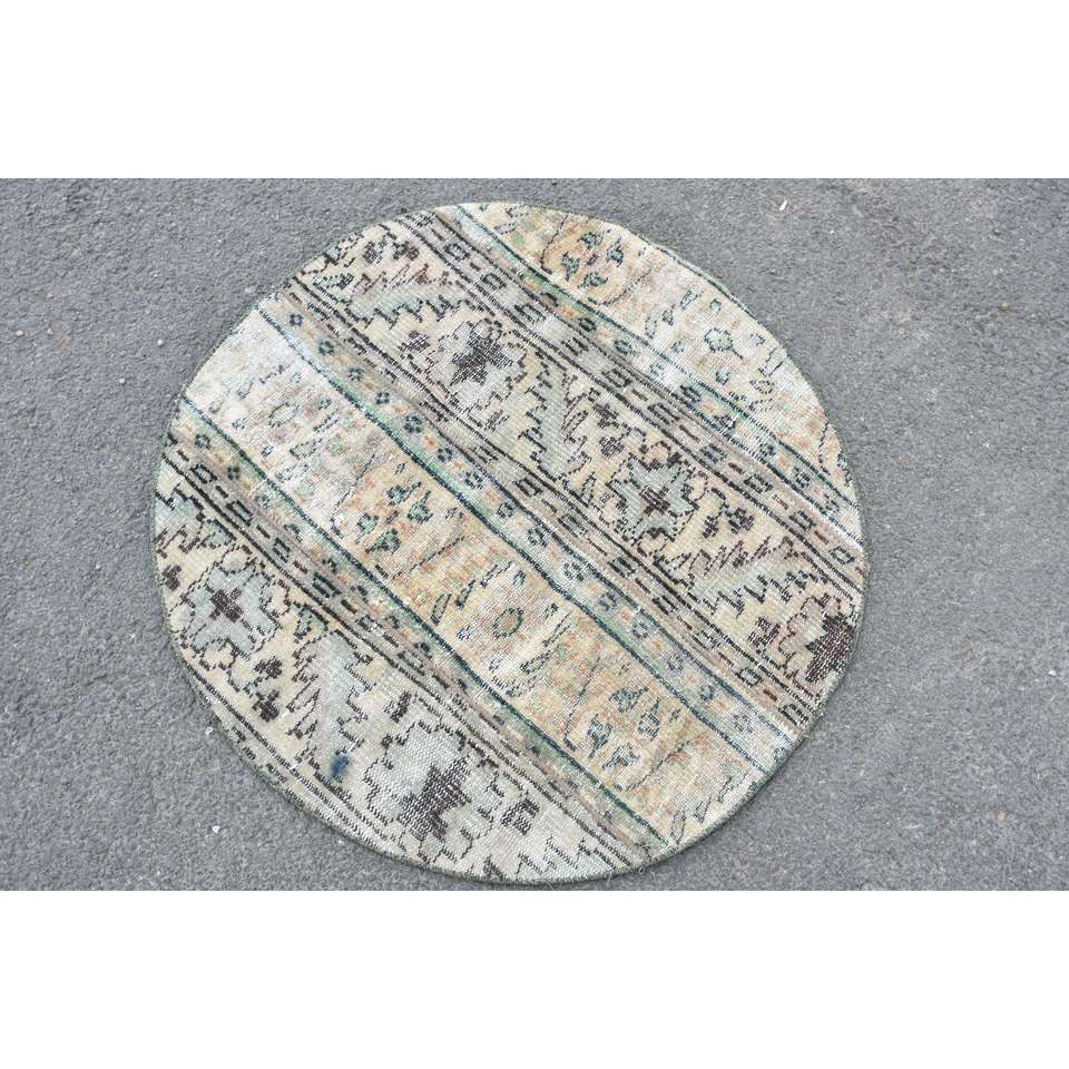 Alfombra Turca Vintage, Redonda de 3x3 pies, Alfombra de Lana con Estampado Animal Verde Marrón