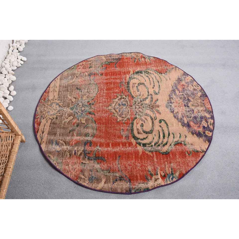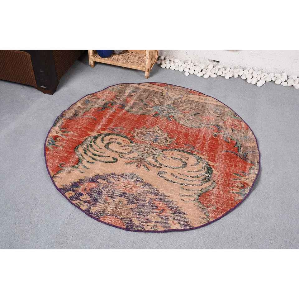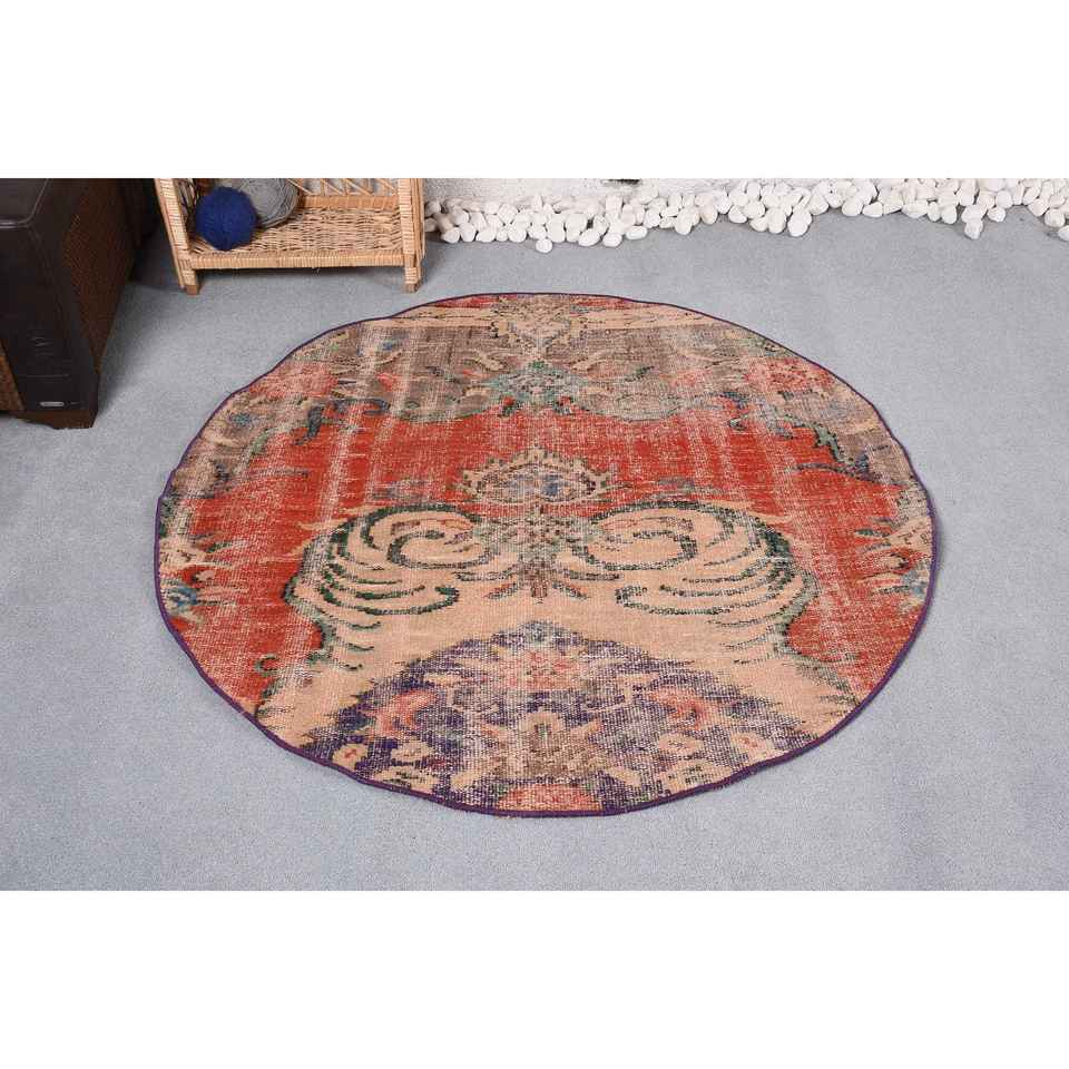 Alfombra Turca Vintage, Alfombra de 4,2x4,3 pies, Alfombra de Lana Roja Ombré