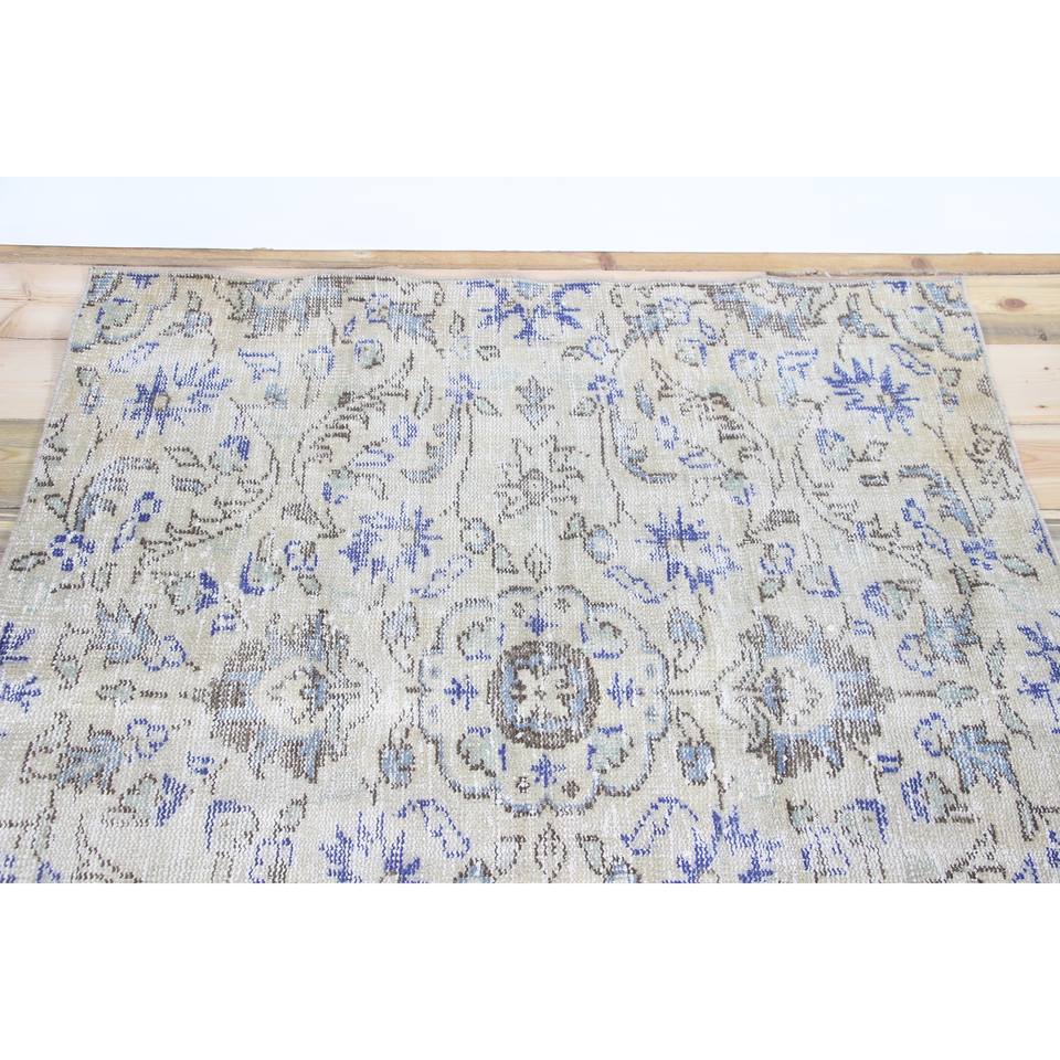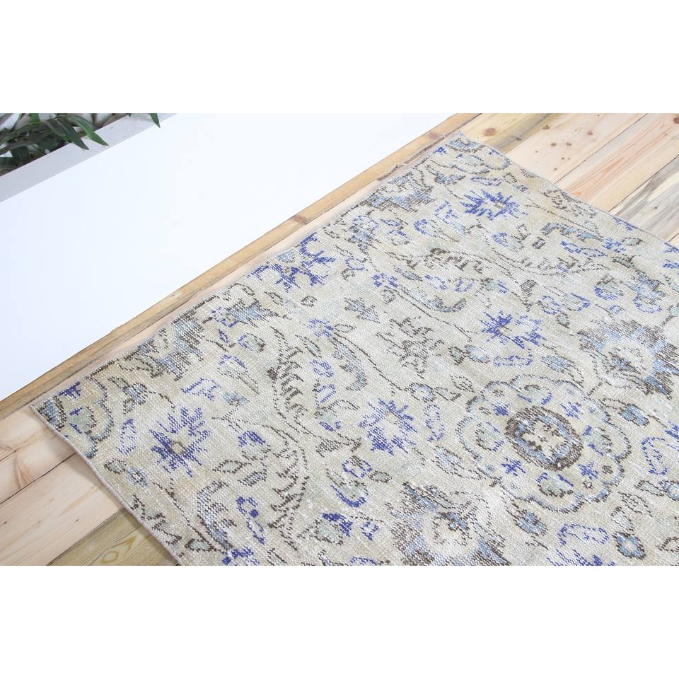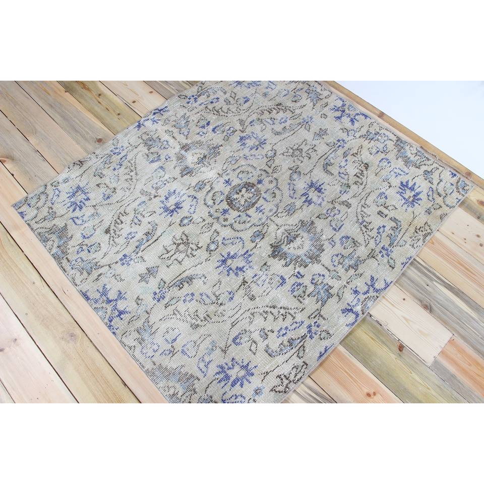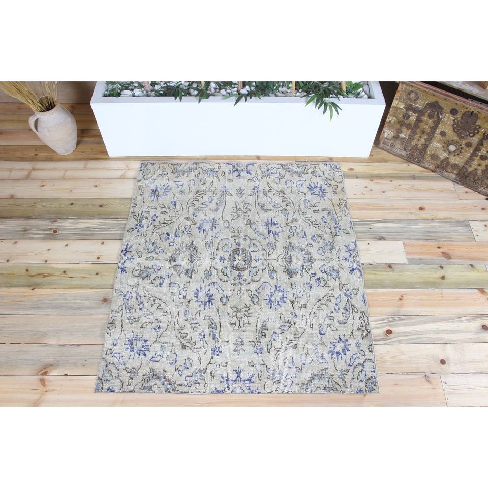 Alfombra Turca Vintage de 4x4.4 pies, Alfombra Azul con Diseño Floral de Lana