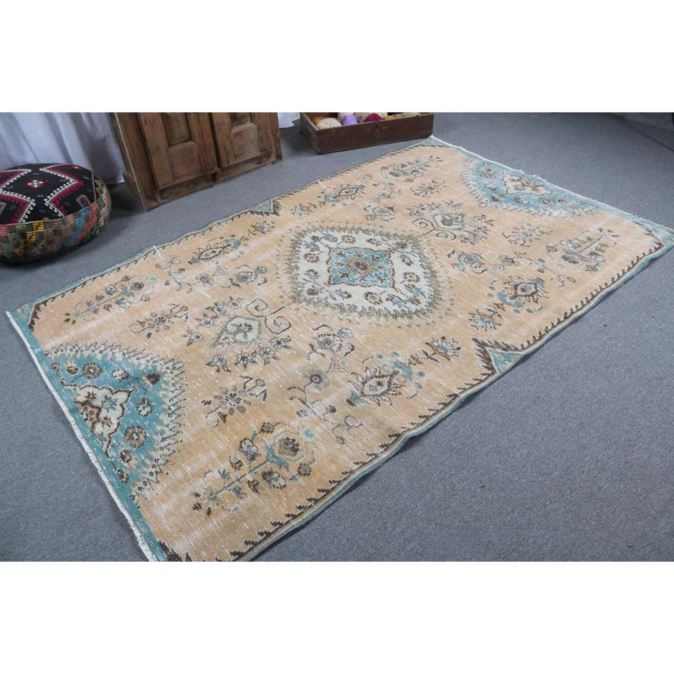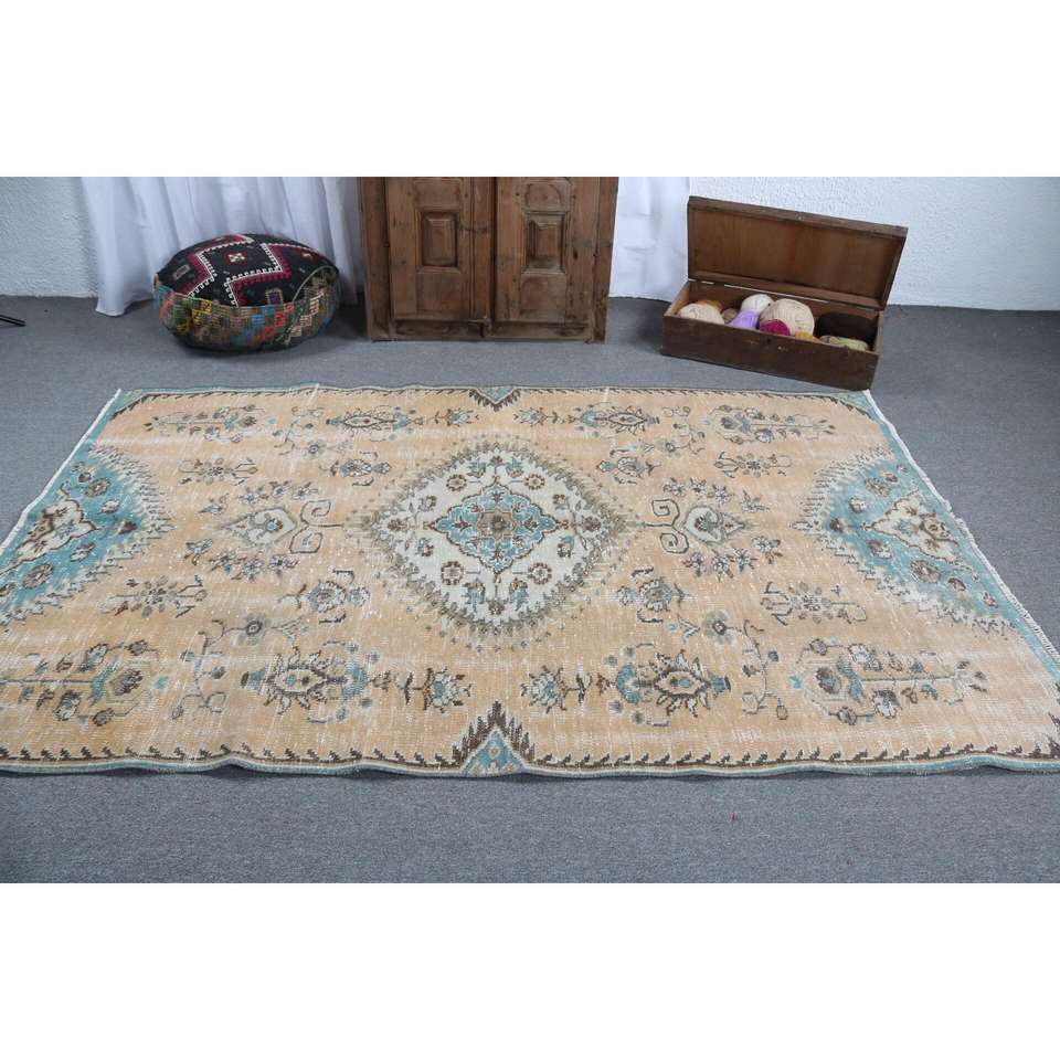 Alfombra Turca Vintage, Alfombra de 5.1x8.2 pies, Alfombra de Lana Ikat Azul Marrón