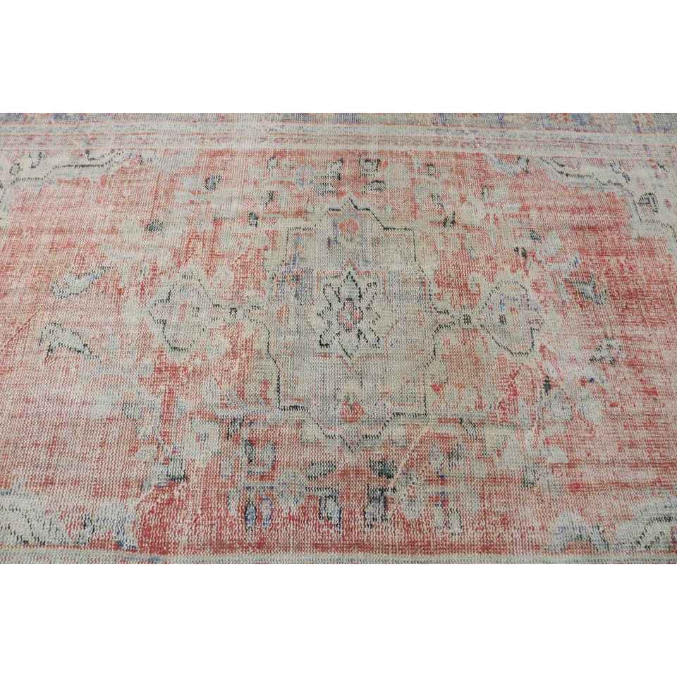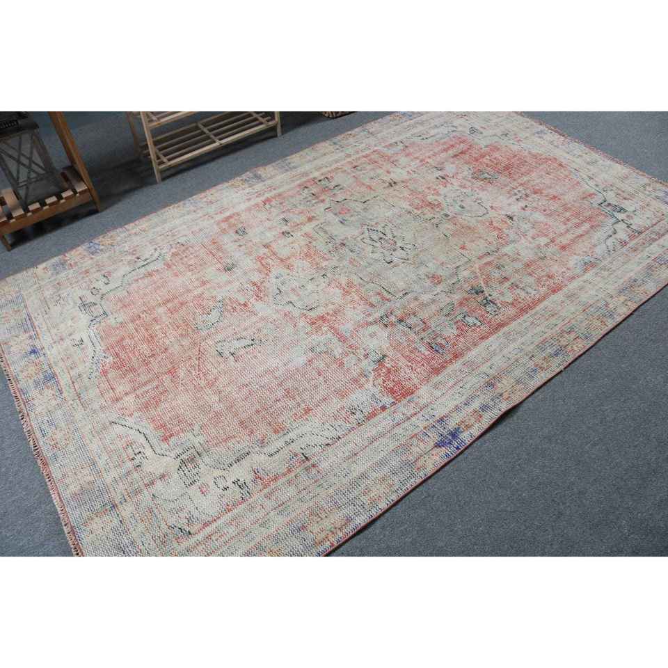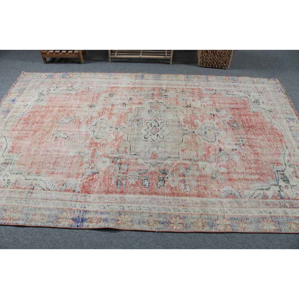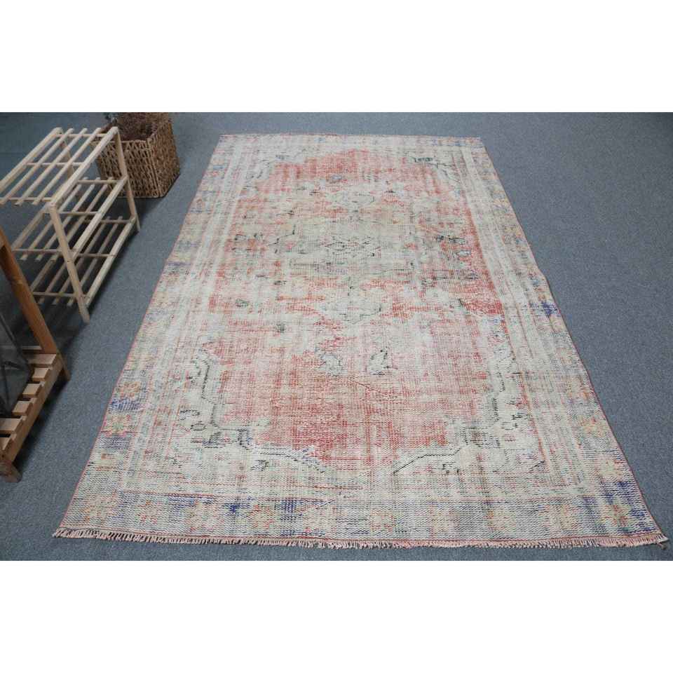 Alfombra Turca Vintage de 5.2x8.1 pies, Alfombra Roja de Lana Sólida