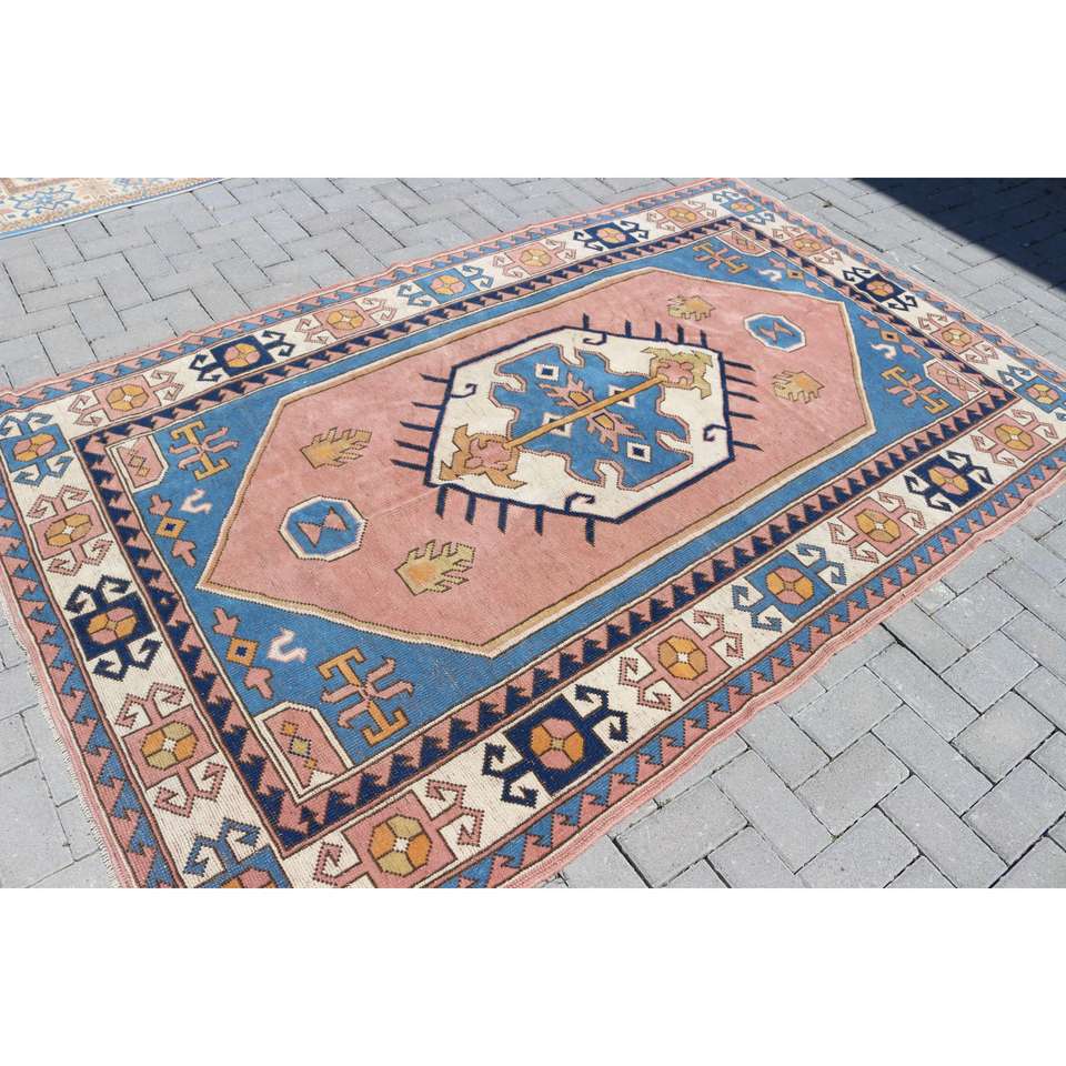 Alfombra Turca Vintage, Alfombra Grande de 5.2x8.2 pies, Alfombra Azul Estilo Suroeste