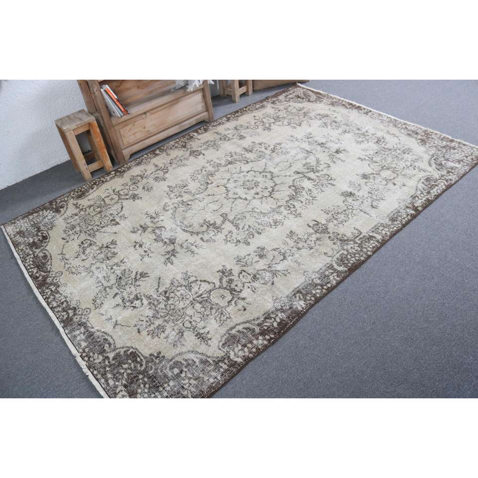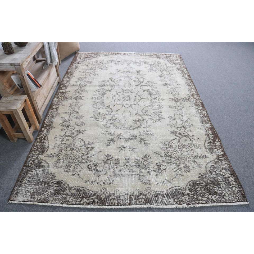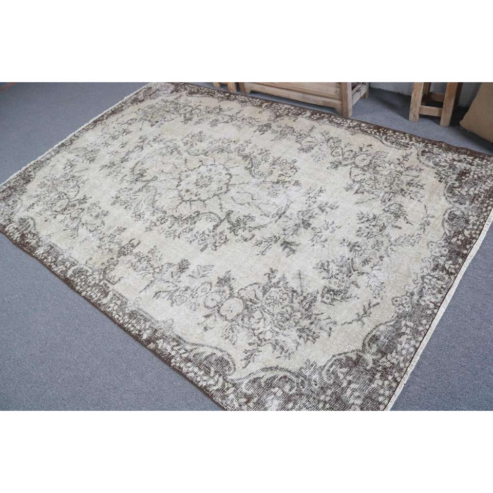 Alfombra Turca Vintage de 5.3x8.1 pies, Alfombra Grande de Lana con Diseño Floral Gris