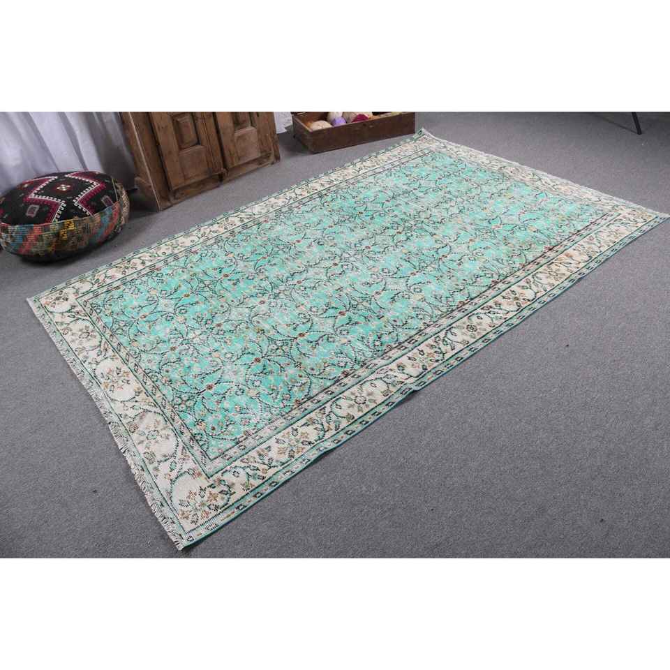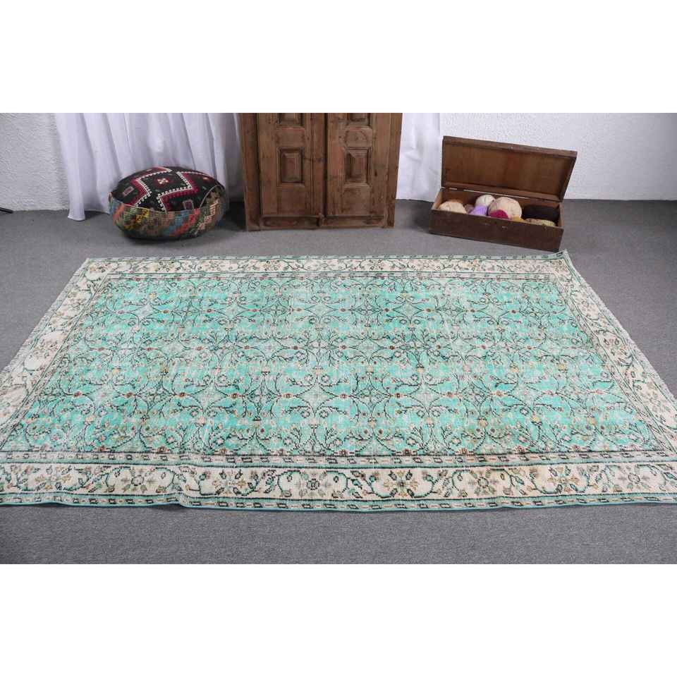 Alfombra Turca Vintage de Lana Azul, 5.3x8.4 pies (162x257 cm)