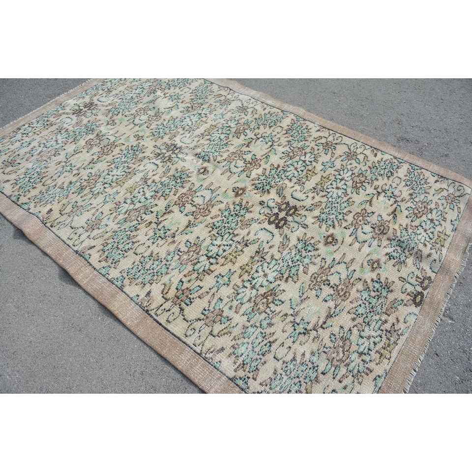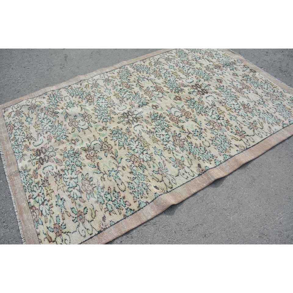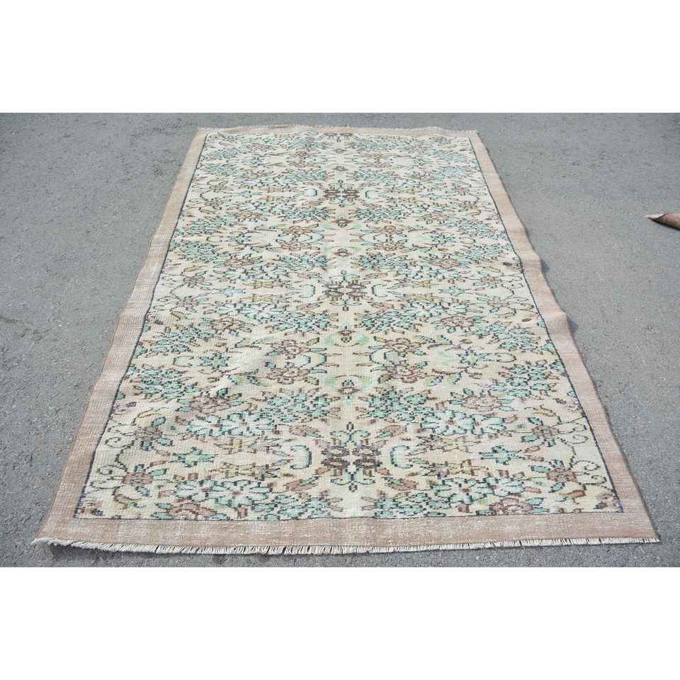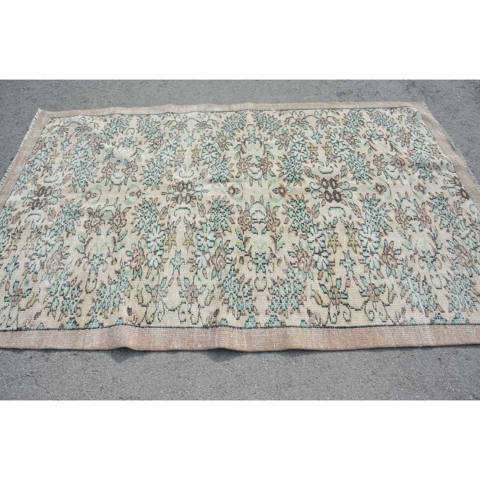 Alfombra Turca Vintage de 5.3x8 pies (162x245 cm), Alfombra de Lana con Borde Marrón